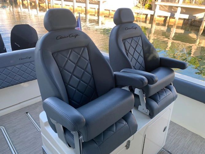 This 30' 2023 Chris-Craft Catalina has been pampered & maintained by its owner. Kept on a lift behind the owner's home. Powered by Twin Mercury V8 Verado's with Approx. 89 hours. Includes Outboard Dayboat protection / Extended service contract thru November of 2030. Black Pearl Metallic Painted Hull with Silver Boot Stripe. Heritage Trim Edition, Options Include- Joystick Piloting, Bow Truster, Seakeeper Ride System, Siren Alarm Monitoring System, Garmin Open array Radar with Twin 16" Screens, Engine Flush System, Stainless Steel Anchor, Head in Cabin w/Waste Macerator, Air Conditioning System, Full Black Canvas covers, Canvas Engine Covers. Forward Med Sunshade, Under Water Lights, Sirius Sat Radio, Premium Audio System, Twin Helm seats, under seat Ice Chest., Aft Teak Table, Refrigerator, Ski Pylon, Much More.