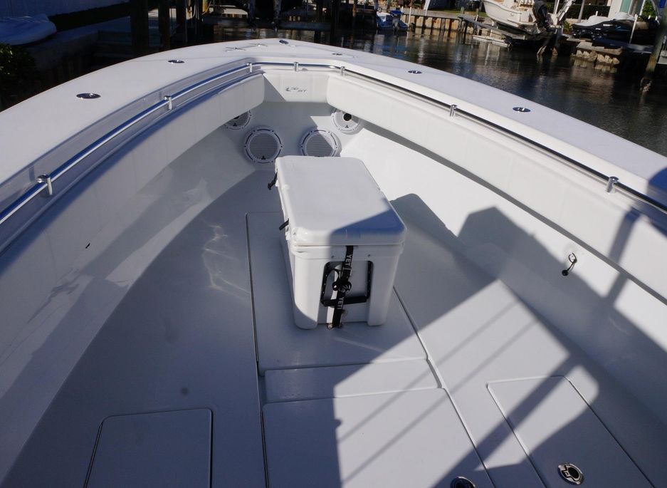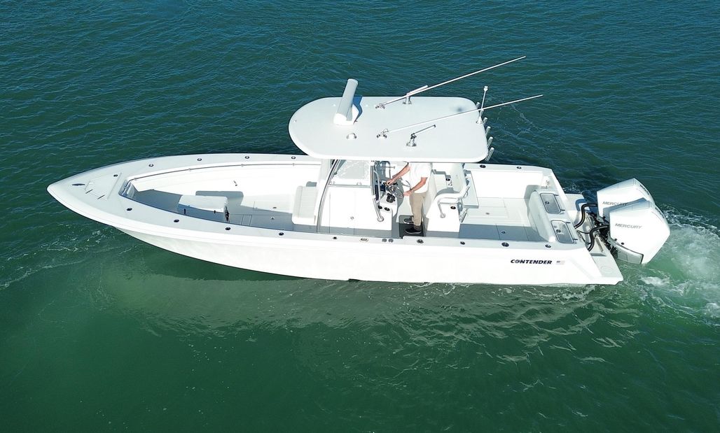 Come see during the Fort Lauderdale Boat Show. Exceptionally clean 32 Contender that is ready for the next adventure! This is a great opportunity to own a 32 Step Contender that is is lift kept and turnkey. Powered by Mercury v8 (painted cold fusion white) with a little over 200 hours and warranty until 12/2025. The boat runs very economically - at approx 40mph will see 2 gph!