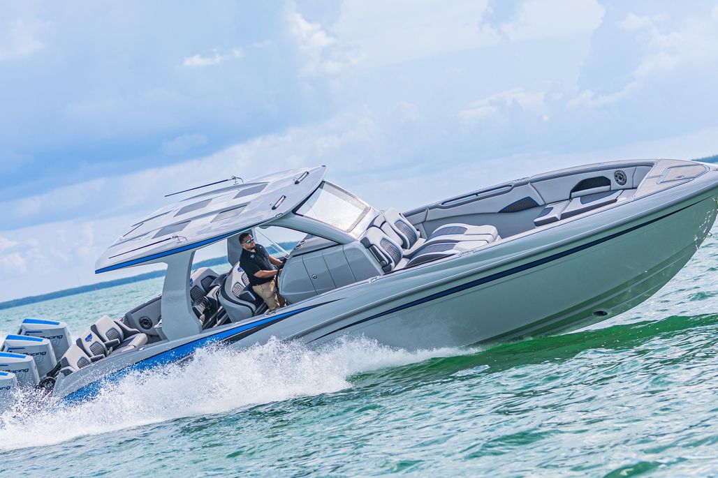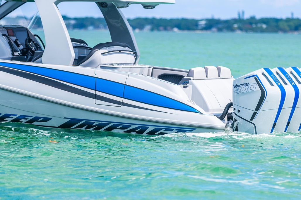 This 2023 Deep Impact 399 Sport is a fully customized, high‑performance offshore center console powered by Quad Mercury Racing 400R V10s with only 68 hours and backed by warranty until 6/1/2026. Loaded with premium electronics, upgraded lighting, custom paint, and luxury comfort features, this 39’9” Deep Impact stands out as one of the cleanest and most optioned 399s available.