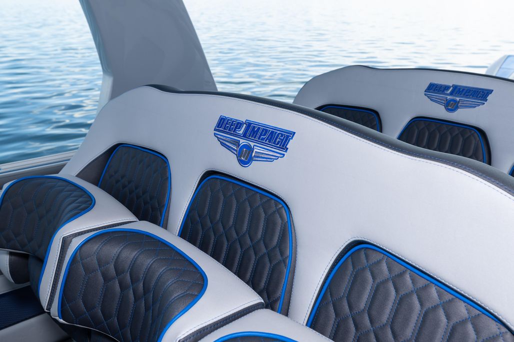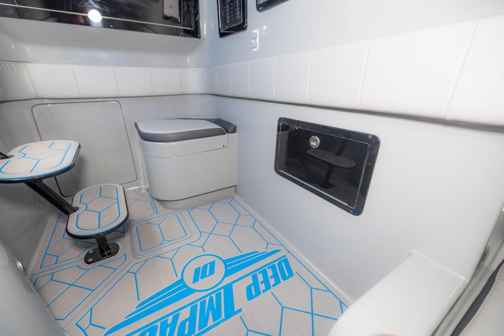 Custom paint: hull painted from rub rail to waterline with gunwale and hardtop accents; two‑tone Deep Impact logo