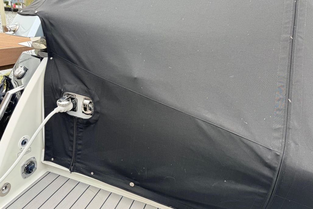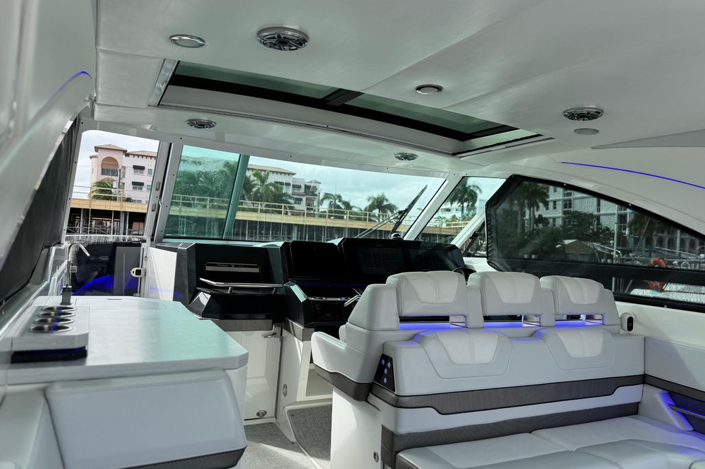Navigate with confidence using the Raymarine® Twin Axiom® XL 19 GPS Chartplotters, FLIR 364 and Magnum Radar, delivering unparalleled accuracy. Stay cool with the spacious cockpit's 18,000 BTU A/C system, complemented by a mooring windshield sunshade. Enjoy premium audio with the JL Audio® M6 speakers and subwoofer, or manage systems effortlessly with wireless iPad® digital switching control.