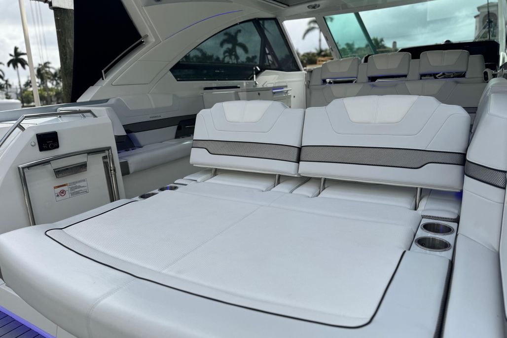 Accommodating up to 16 passengers, the Formula 400SSC provides ample space for entertaining family and friends. The well-appointed cabin and head enhance comfort during your journeys, while the electric windlass ensures convenient anchoring. Joystick Piloting offers effortless maneuverability, making docking a breeze.