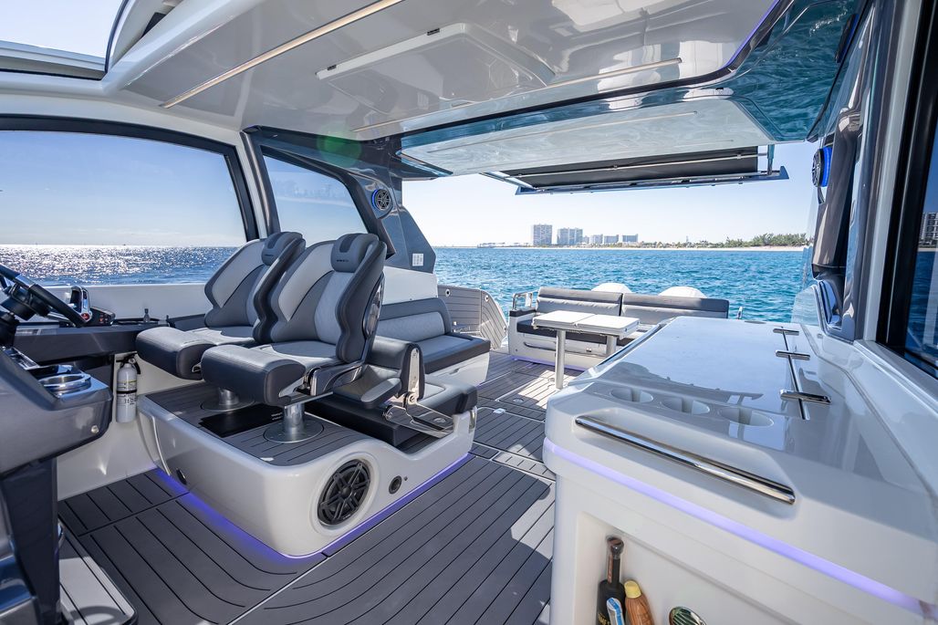 Whether you like to race around in open water at 50 mph or raft up on a lazy Sunday afternoon, the Galeon 375 GTO is the boat for you. This sleek, sporty, and versatile cruiser can do anything you ask of her. And she can do it with plenty of room to spare for your favorite people, thanks to a spacious lounge in her bow, a cockpit equipped with Galeon’s famous Beach Mode expandable decks, and highly comfortable accommodations. The sky is truly the limit when it comes to the 375 GTO.