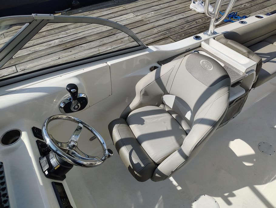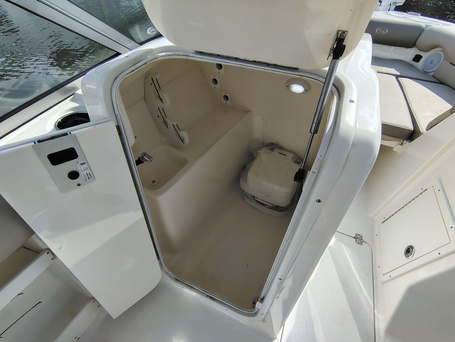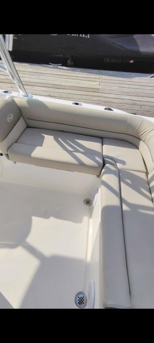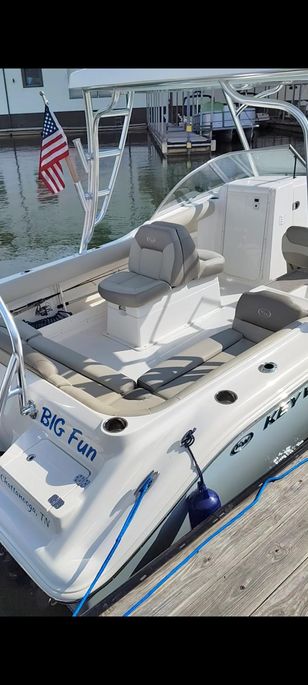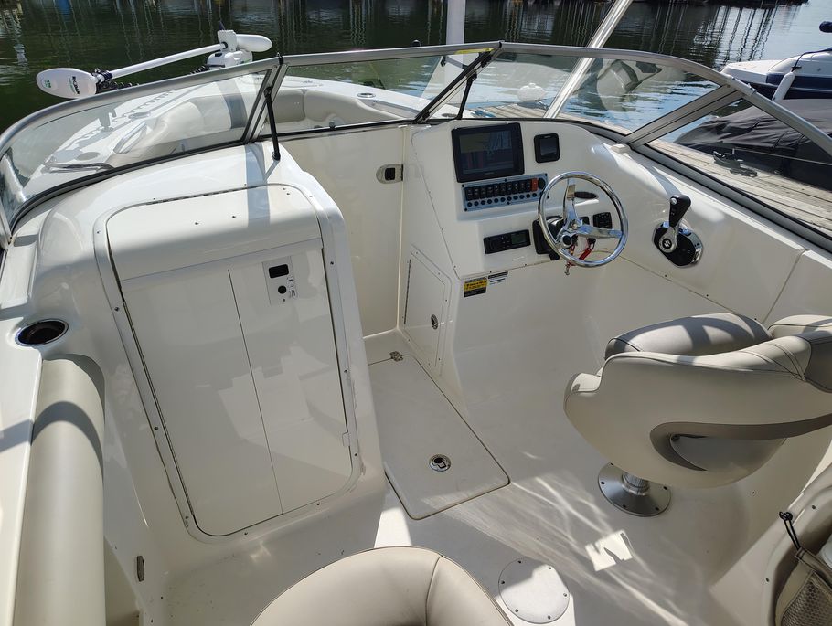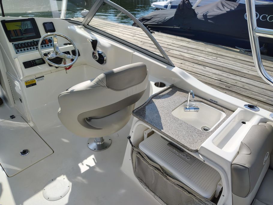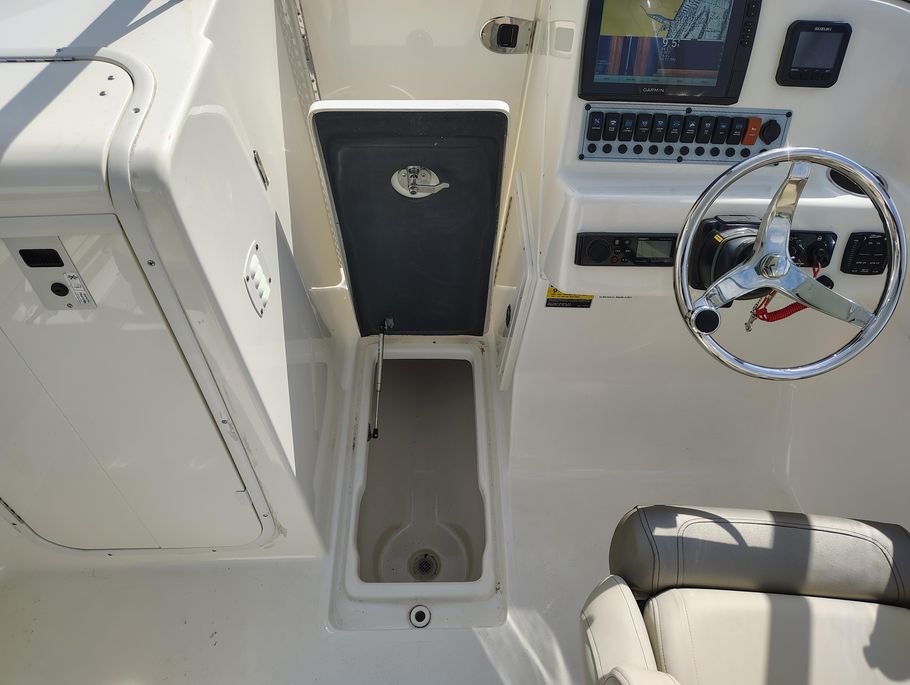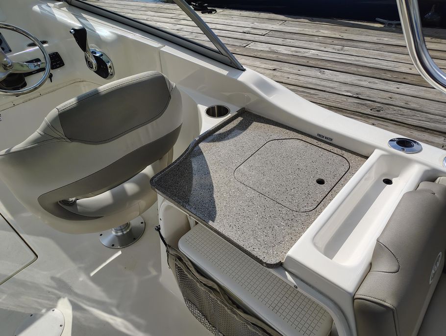 Introducing the 2023 Key West 239 DFS! A stunning Ice Blue dual console boat that embodies versatility and performance. This boat has been dry stored since new and has only been operated in fresh water! This vessels no wood- no rot constructed hull features a fiberglass modified Vee hull shape, ensuring a smooth ride across various water conditions and the Closed-Cell Positive Foam Flotation ensures the boat remains afloat even if swamped. Powered by a robust Suzuki 300hp outboard engine, the boat delivers an impressive cruising speed of 32 mph, making it perfect for both leisurely outings and spirited adventures. With only 40 hours of use, it promises reliability and excitement on the water. The 239 DFS is designed for comfort and convenience, equipped with a head and also wrap around aft seating, bow cushions with filler cushion and a custom sun shade for added functionality. Its thoughtful layout flows beyond the delux captains chair allowing for enjoyable days spent with family and friends with features like a lounge with 60qt under cushion cooler, 36qt cooler, pop-up cleats and fender holders, a ski pole and additional lighting in the hard top as well as underwater, making it an ideal choice for those seeking a blend of performance and leisure. Additional features include: