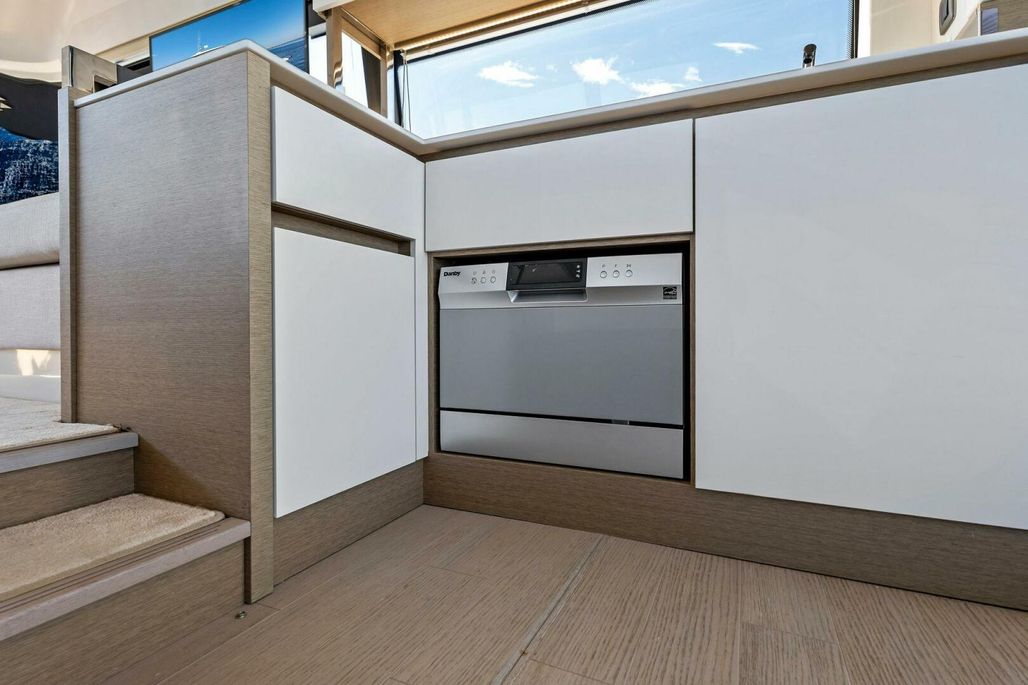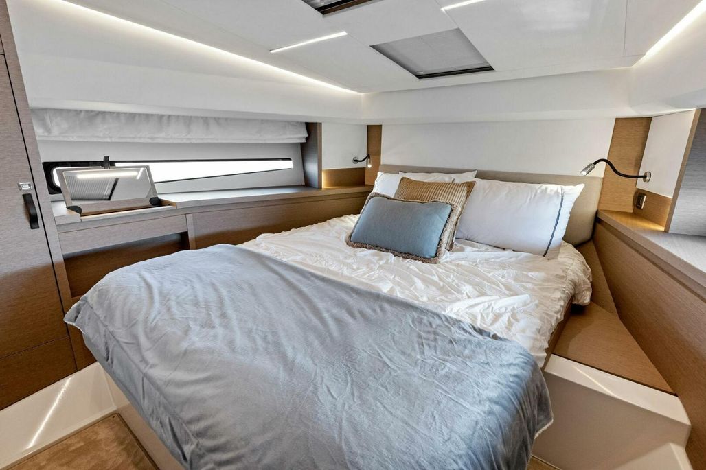 - The flybridge is a standout feature of this model, providing a spacious area for relaxation and entertaining. It typically includes a helm station, a sunbathing area, and often a wet bar with seating for guests.