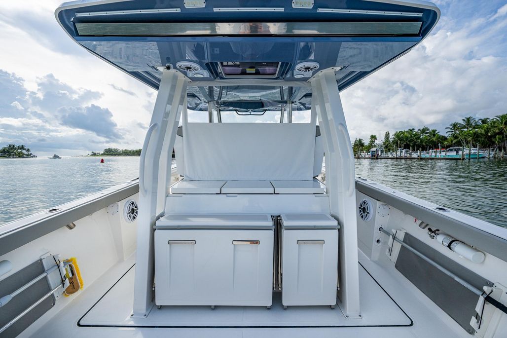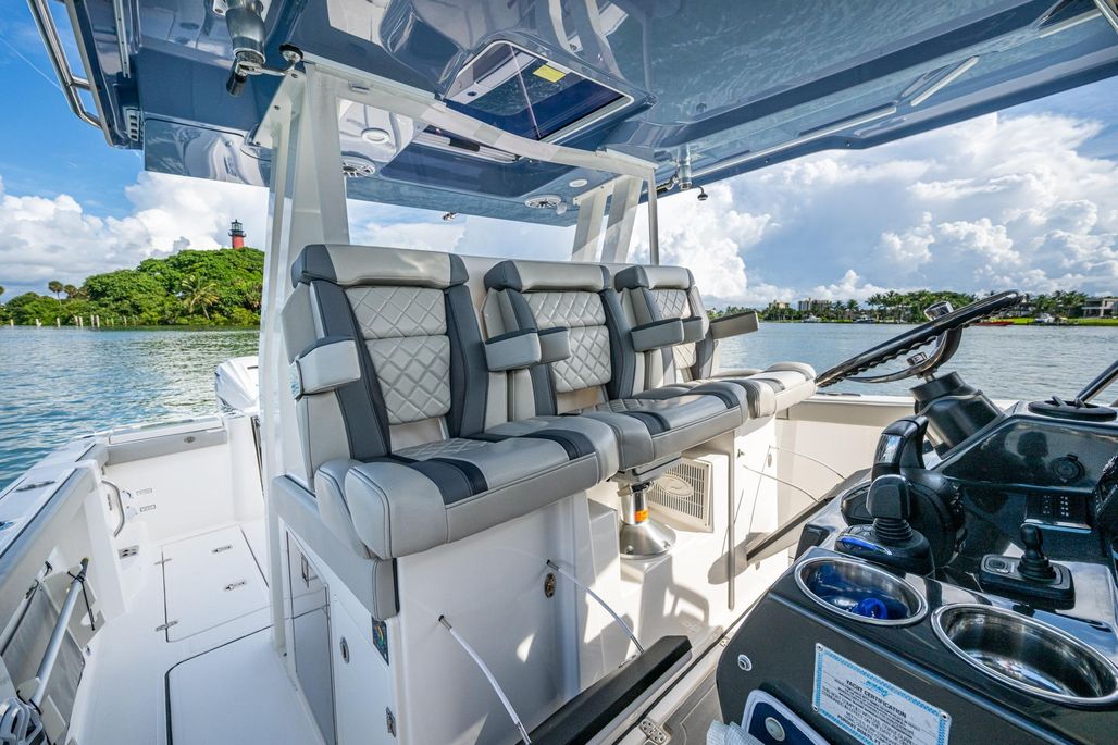 This S 358 is fully loaded to include a SeaKeeper, Helmaster, FLIR, Garmin Open Array Radar, Sirius XM Radio, MakeFast Electric Shade, Helm & Cabin AC, Telescoping Outriggers, and an upgraded Gulf Stream Blue Hull Color. Plus, Yamahas Warranty thru 11/18/2027 for the 425 HP XTO engines.