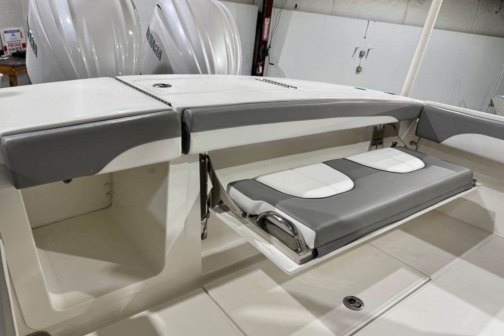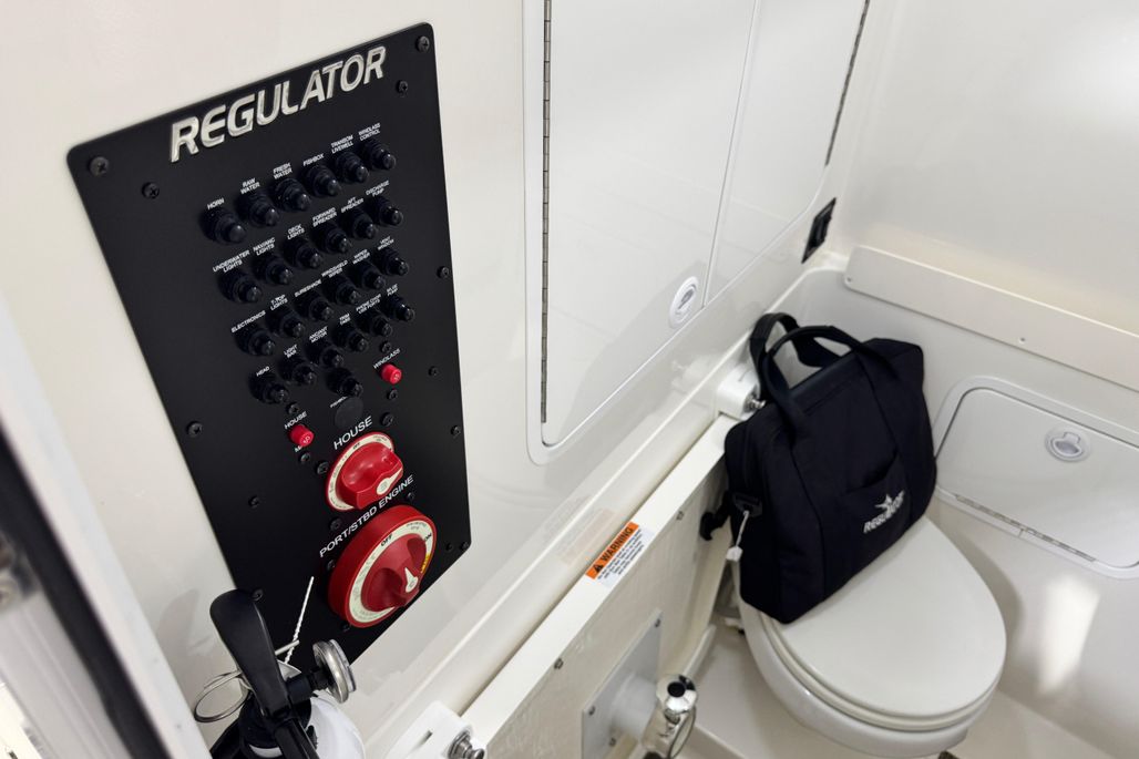 Step up performance with a fishing machine built for offshore action. With its sharp bow entry and Lou Codega-designed hull, Regulator’s signature ride comes standard. The new Yamaha Helm Master® EX option delivers AutoPilot with Waypoint Deceleration, allowing you to slow your approach and shift easily to Multimode Set Point™ - a seamless integration that makes it easier than ever to maintain your position for rigging baits and more. Our 28 Tackle Center, seatback rod holders, optional T-Top rocket launchers, and Taco® Grand Slam outrigger upgrade create an ideal rigging station for a group of anglers looking for offshore action. The transom walkthrough tuna door provides flexibility for both boarding and fishing, with our flip-up forward seat backrests, optional forward sun shade, and cockpit SureShade® and 28 sunbed table adding an extra degree of comfort as you pursue the Offshore Life.