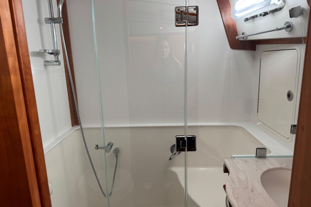 Athwartship Master Stateroom: A unique design choice where the master bed is oriented side-to-side rather than bow-to-stern. This creates a more open feel and allows for a flat floor throughout the cabin.
