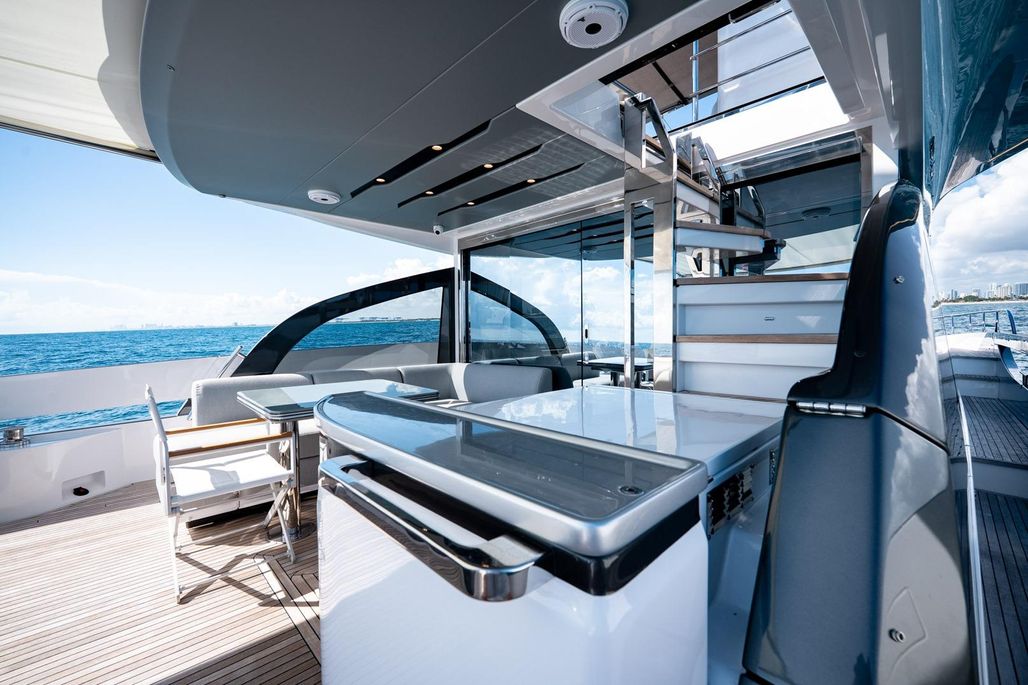 This 2024 Azimut S7 is the epitome of Italian luxury yacht design, blending cutting-edge performance with an exceptionally livable layout. Showing in like-new condition, she features the newest model upgrades, including the redesigned full beam master stateroom configuration, one of the most significant enhancements from the Gen 1 Azimut S7s. The flybridge is also much larger in comparison to Gen 1 Azimut S7s, now including U-shaped seating for guests, sun beds, and a full outdoor bar set up (grill, sink, ice-maker, fridge, and trash can.)