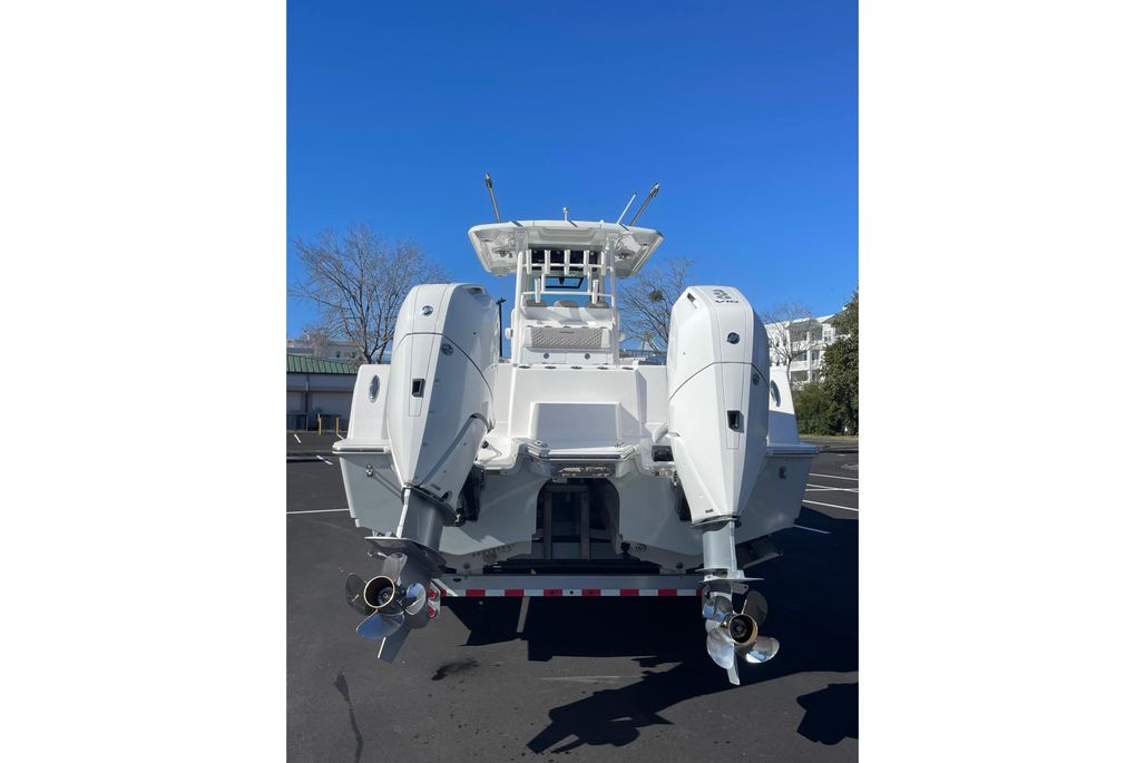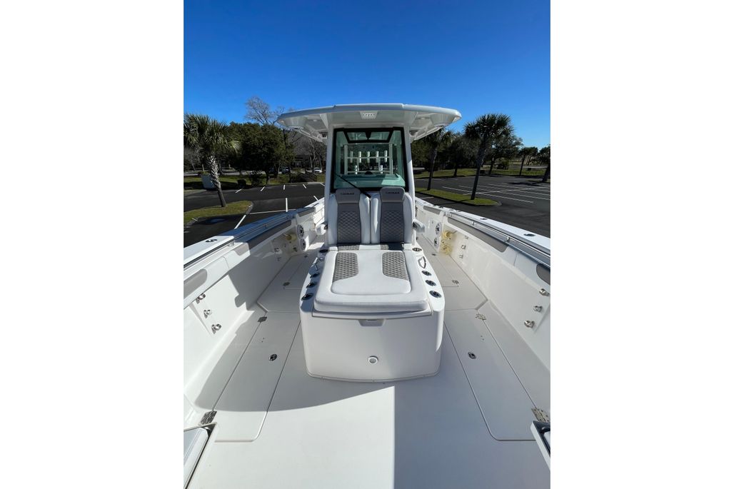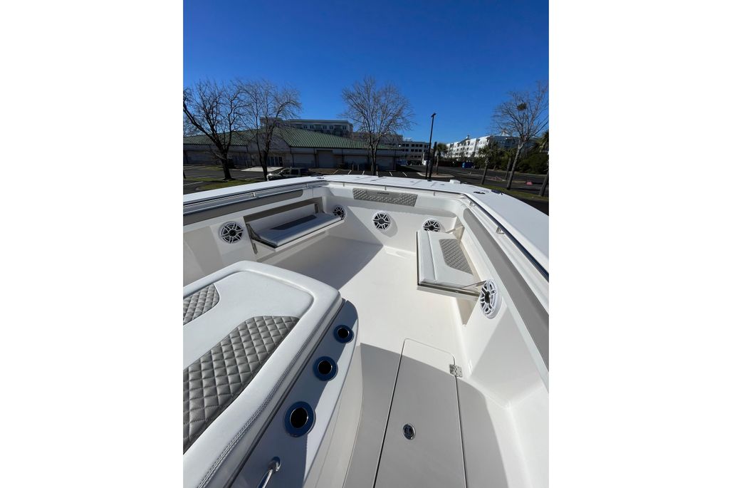 This 2024 Caymas 34 CT is a highly optioned offshore-capable center console, finished in Dove Gray with a full color-matched hardtop underside and powered by twin Mercury Verados. Built for serious fishing and long days on the water, this boat blends performance, comfort, and premium hardware throughout.