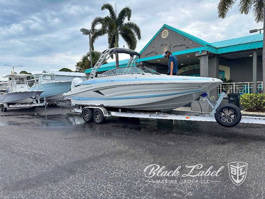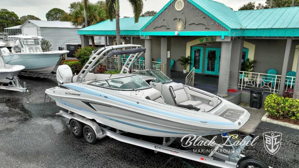 Introducing the stunning 2024 Crownline Eclipse E280 XS, a remarkable bowrider that perfectly blends style and performance. With an overall length of 28 feet, this vessel boasts a sleek modified Vee hull made from durable fiberglass, ensuring a smooth ride on the water. Powered by a robust 350 hp Mercury 350 Verado engine, it delivers exhilarating cruising speeds of up to 40 mph and a maximum hull speed of 55 mph, making it ideal for thrilling adventures. Designed for comfort and convenience, the Eclipse E280 XS accommodates up to 12 passengers, allowing for memorable outings with family and friends. With two heads onboard, it offers added convenience for longer excursions. This used boat, with only 10 hours of engine use, is ready for new adventures. Experience the perfect blend of luxury and performance with the Black Label Marine Eclipse E280 XS, where every journey becomes an unforgettable experience. Call the professionals at Black label Marine Group today and let us make your boating dreams a reality. We also offer great financing to make your boat buying process smooth and easy.