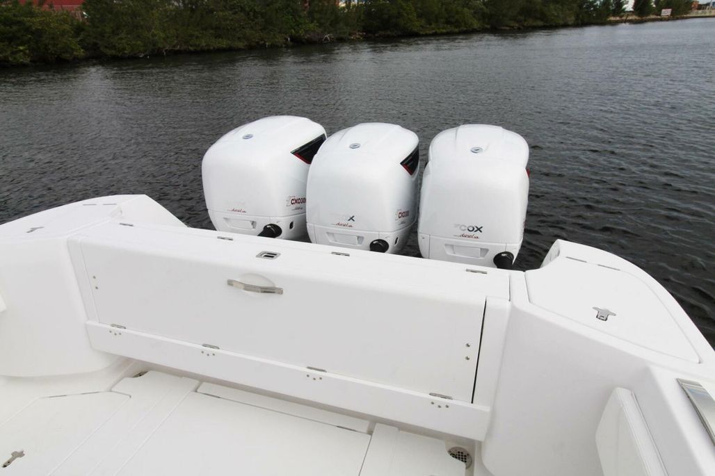 Experience luxury and performance with the 2024 Intrepid Nomad 375 SE featuring triple Cox 300 diesel outboards. This vessel boasts exceptional fuel efficiency and an impressive range, making it an ideal choice for those seeking both adventure and economy on the water.