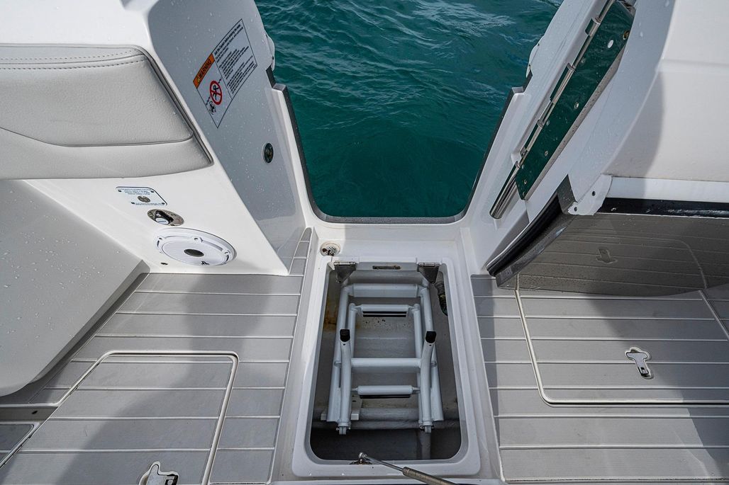 - Hydraulic hullside swim/boarding platform with ladder and grab bars