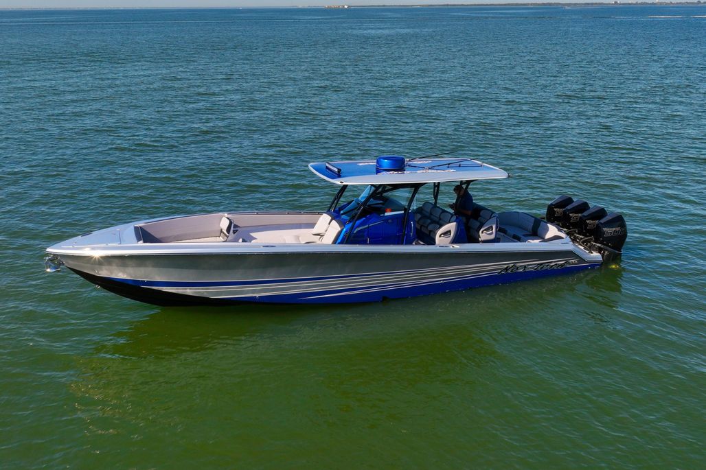 This stunning 2024 Nor-Tech 390 Sport Center Console is a remarkable vessel that combines performance and elegance. It is one of only 3 built with the quad 500 Mercury engines, and one other is the owner of Nor-Techs personal vessel. Skip the wait and take to the Poker run this weekend!