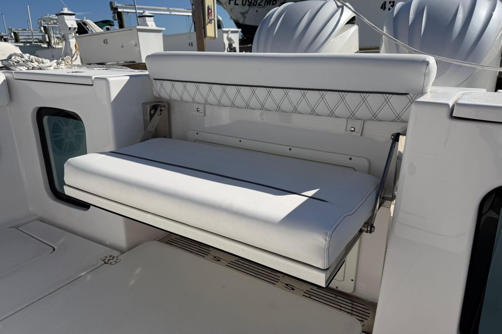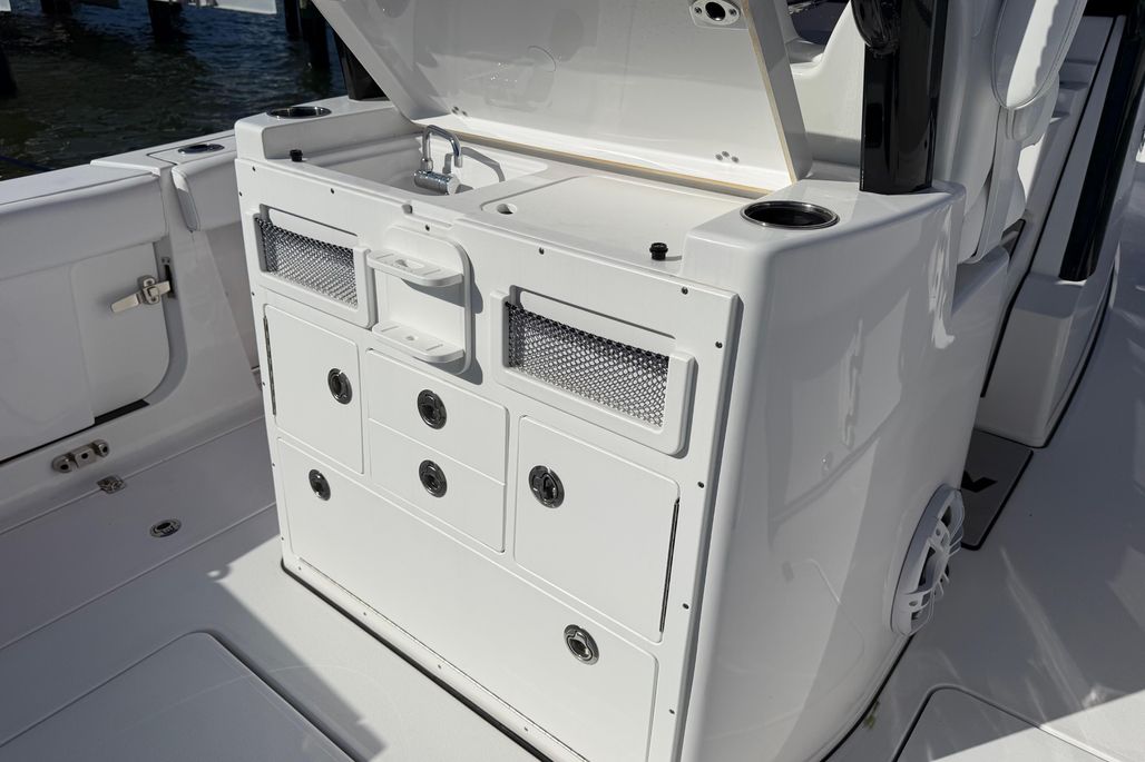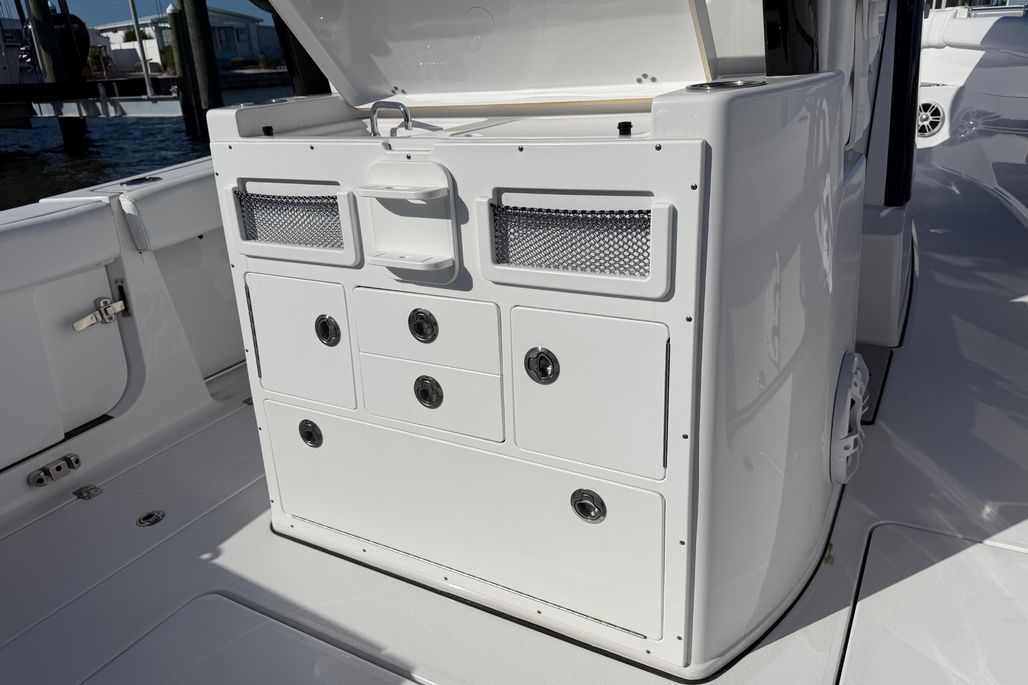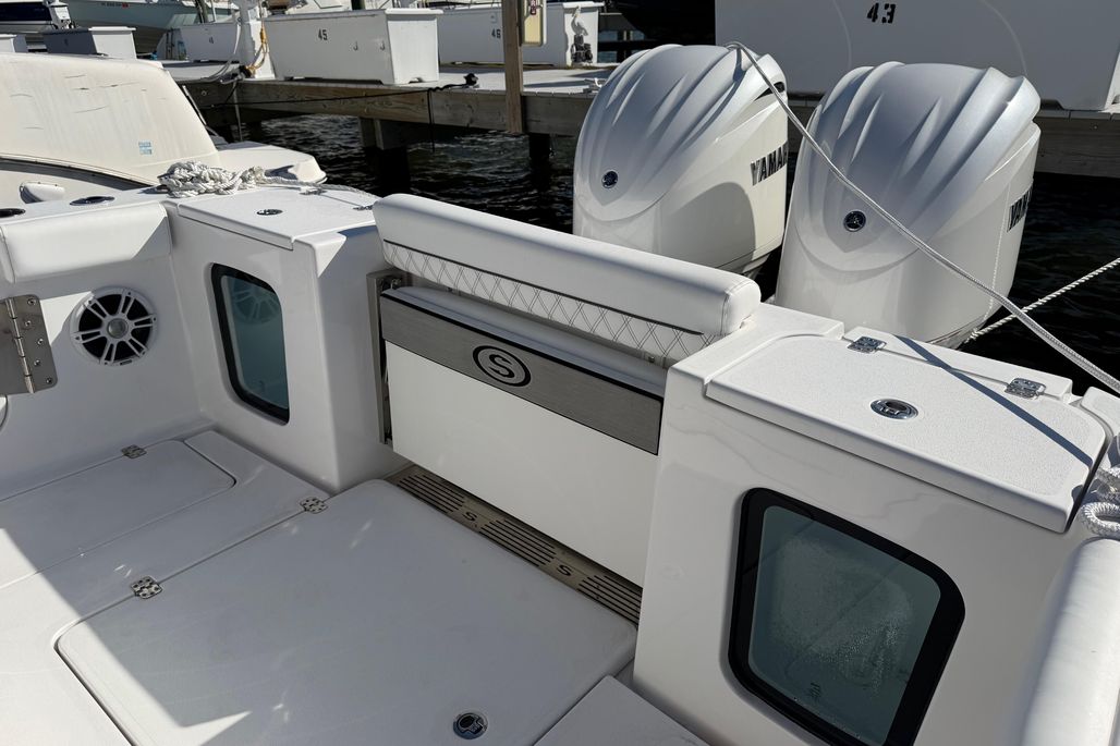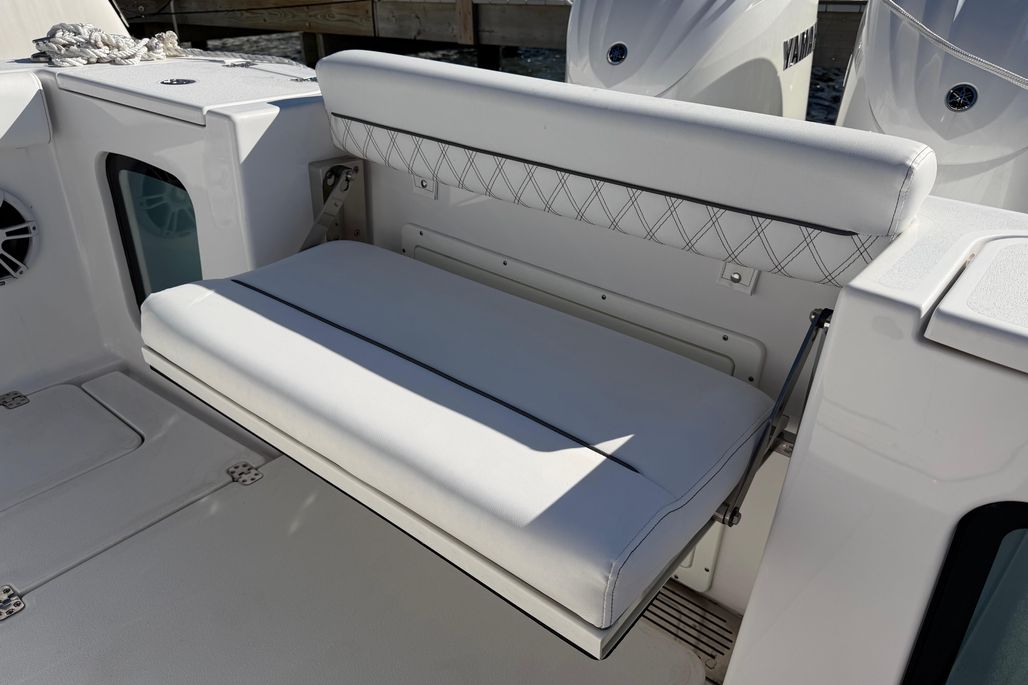 Stepping on the Open 282TE, you'll love all of the designed-in amenities starting with twin pressurized transom livewells, dual side entry doors with fills on both sides and the oversized hard-top with rear leg supports. The bow of this boat opens up the entire area for fishing and gains a large coffin box with chaise lounge. Ample comfortable sitting all the way around which include premium dual captain's chairs. All packaged in a super capable offshore hull with a dry, soft and comfortable ride.