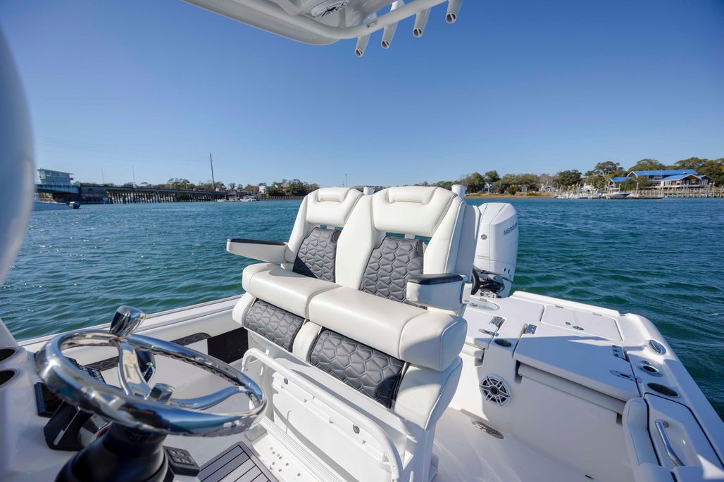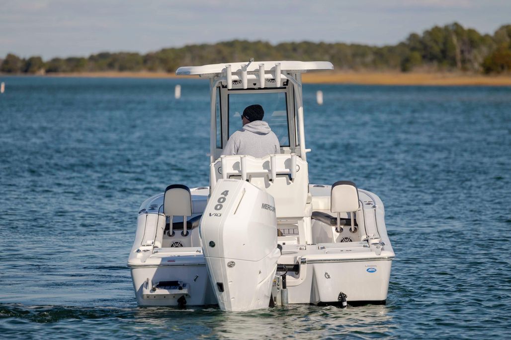 Whether you're chasing redfish in the flats or cruising the ICW, this boat offers versatility, comfort, and serious fishability. The Mercury 400 V10 pushes this hull effortlessly, with top-tier handling and low-end torque.