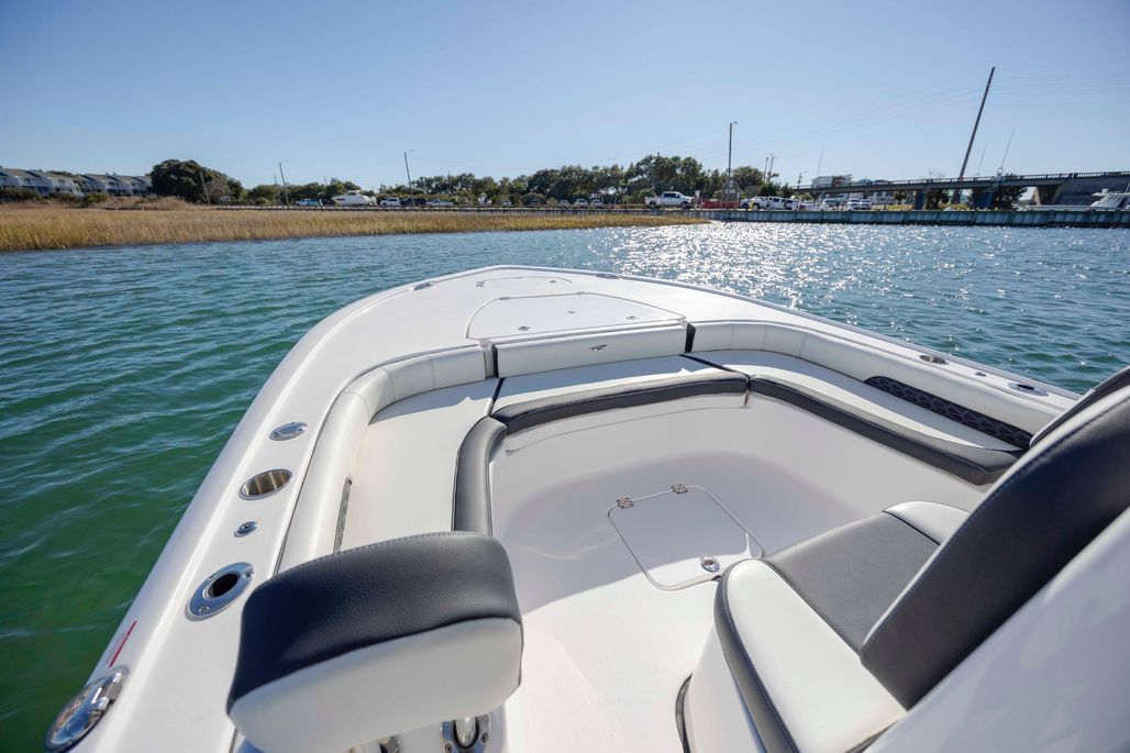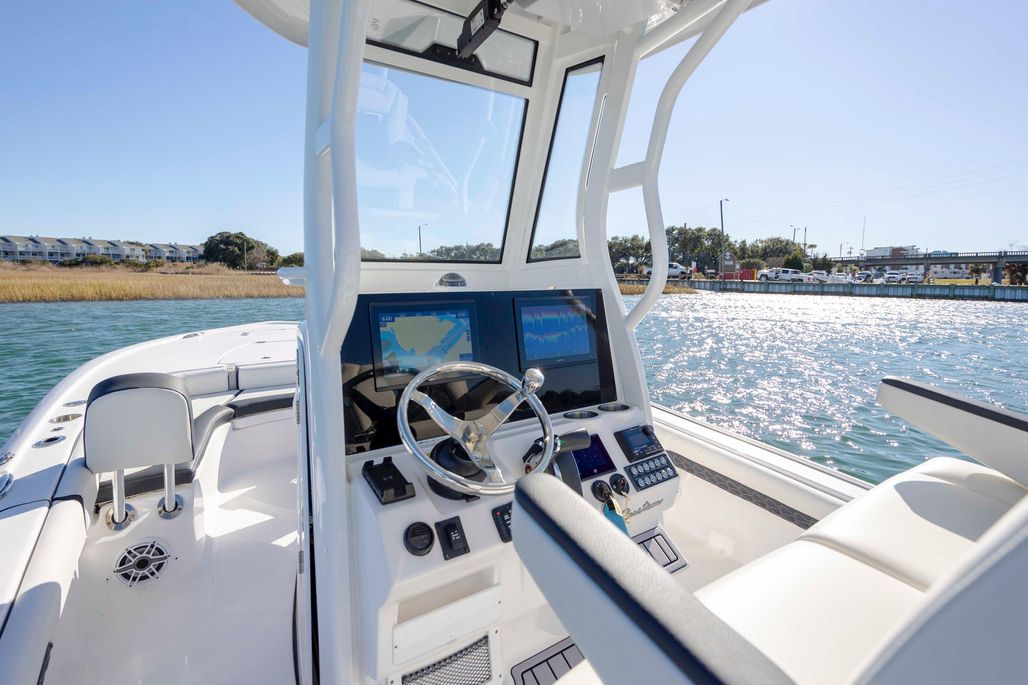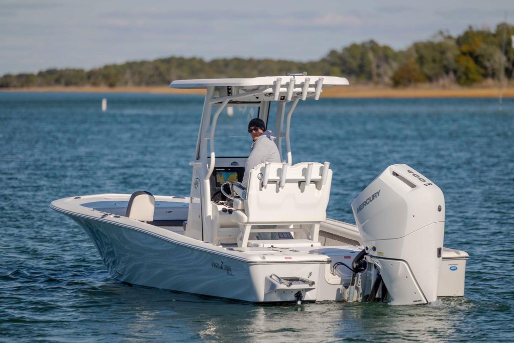 This 25' Carolina Bay is one of the best-performing bay boats in its class. The stepped-hull design delivers incredible ride quality, stability, and fuel efficiency — ideal for inshore and nearshore fishing or family cruising.
