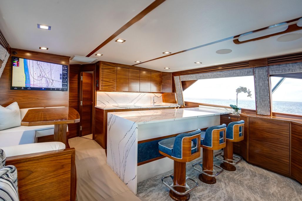 “La Barca” a 2024 68 Viking spec’d with a Palm Beach Towers hardtop, snow white hull and complementary faux teak throughout is an excellent example of a timeless sportfish configuration. She is equipped with twin 29kw generators, Seakeeper 26, teak decks, custom appointed interior throughout, mezzanine A/C, Dometic Xz watermaker and Spot Zero combo unit. LaBarca is powered with a pair of MTU 12V2000 M96's engines with warranty through July of 2027 or a total of 2000 engine hours whichever comes first, with the ability to extend coverage!