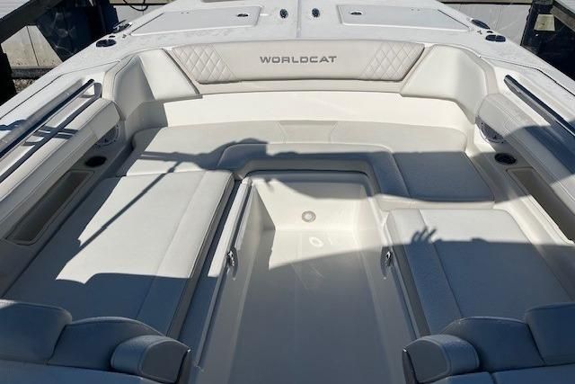 This boat is nicely equipped with popular upgrades, including a forward bimini top for added sun protection and an upgraded stereo package that enhances the onboard entertainment experience. Thoughtful storage, premium fit and finish, and World Cat’s renowned build quality round out a package that stands out in its class.
