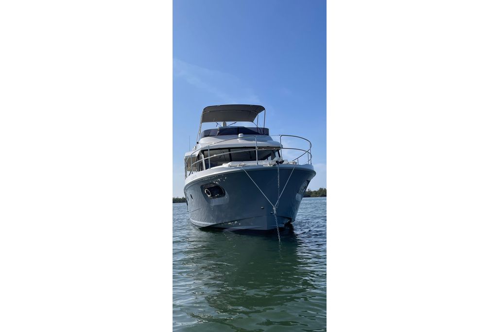 Elegant and sleek Pearl Grey hull finish, designed for optimal fuel efficiency and sea performance