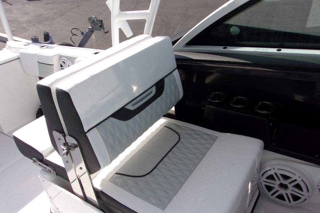 This versatile dual-console boat is the ultimate vessel for reaching your favorite fishing grounds, cruising the open waterways or just gathering with friends for a day on the water. The dual console design of the 252DC allows you and your passenger’s ease of access to the bow and stern of the boat, while also providing a multitude of seating options for the family. Standard features include an insulated baitwell, a fiberglass hardtop with rod holders, gunnel-mounted rod holders, transom-mounted rod holders, and in-floor fish boxes with macerated pump-outs. A wet bar with sink, pull out sprayer, and 35 qt. yeti tundra cooler, dedicated storage options, head compartment, and spacious seating accommodations help to complete the package allowing you to enjoy your recreational time on the water to the fullest.