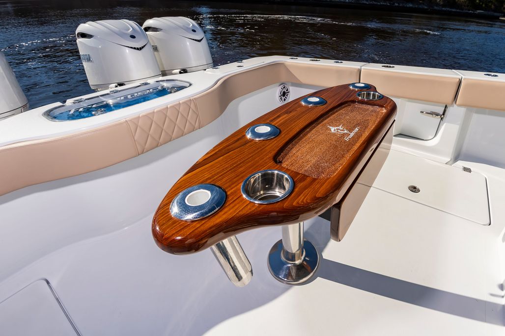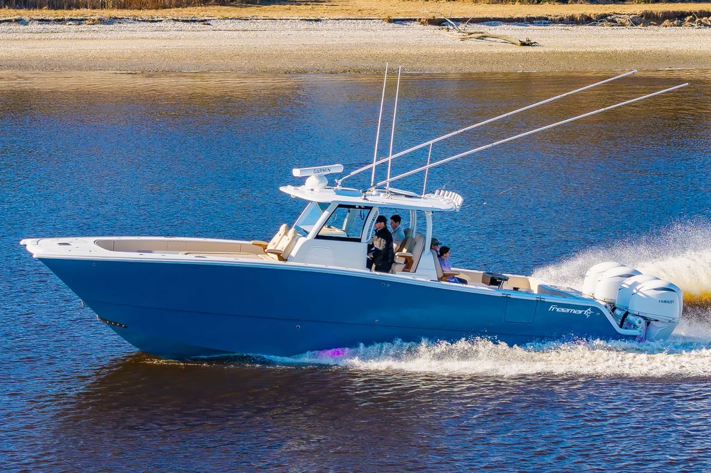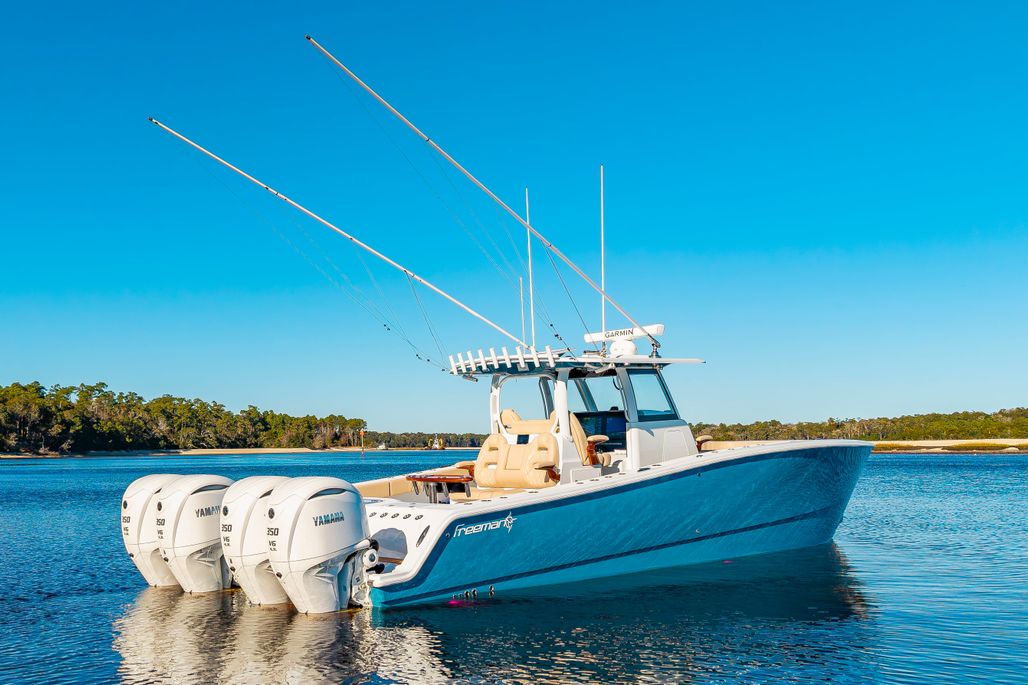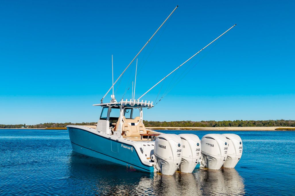"Krusty Krab II" is a like new 2025 Freeman 38 that's ready for her next owners!! Powered with quad 350 Yamahas with HelmMaster Joystick system with ONLY 140 hours and full factory warranty, she's just broken in! She features a full Garmin electronics suite, StarLink, Teak seating package, rocket launcher and much more (see list below). Call Preston Frieze with Bluewater Yacht Sales today forom more information/showings (910)473-2628.
