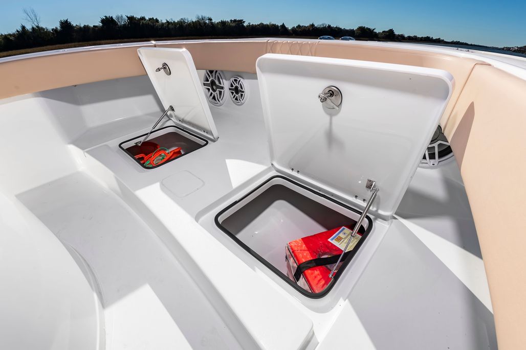 - Oversized front lounger with integrated rod holders