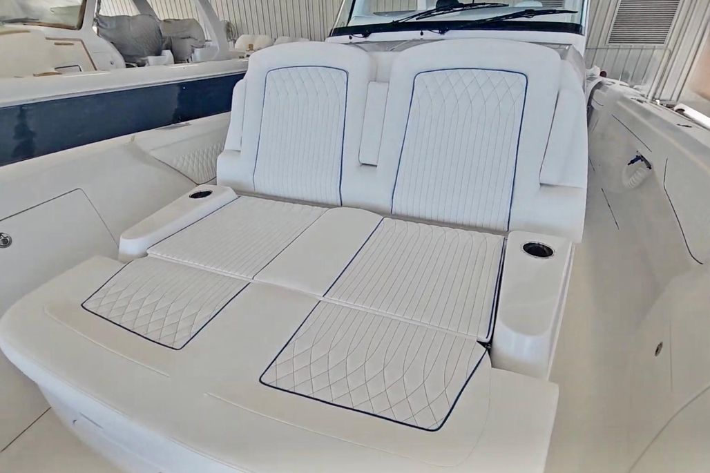 - Hydraulic Seats and Sun Loungers: Adjustable bolsters for all-day comfort during high-speed runs or relaxed anchoring, comfortable lounge seating to take in some sun.