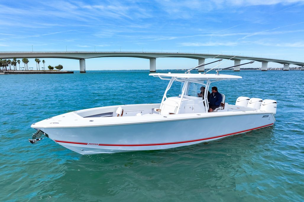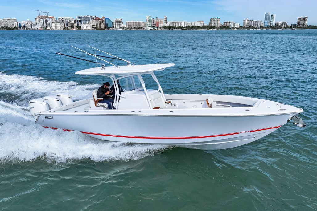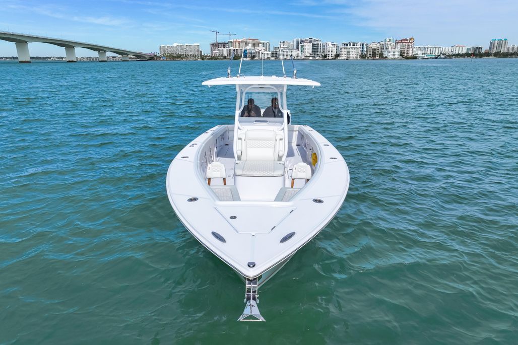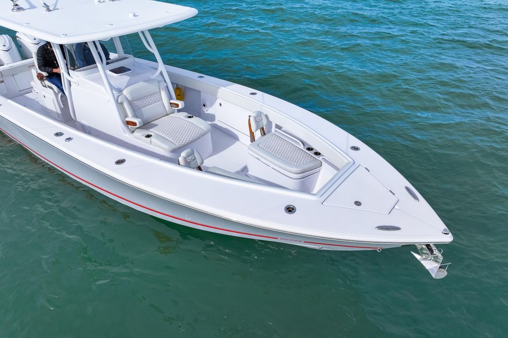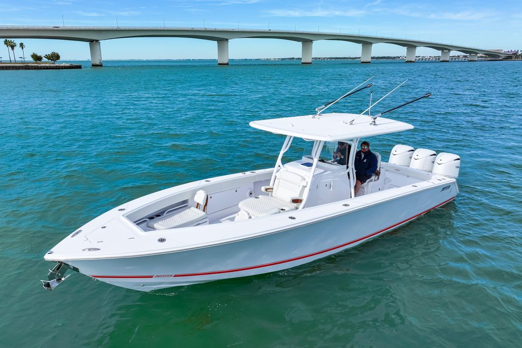 Like new 2025 Jupiter 34 HFS with triple Yamaha V6 4.3 liter 350 HP Engines. The 4.3 liter V6 is the latest in technology and performance from Yamaha outboards. Extravagantly cared for by a knowledgeable owner who has been fortunate to own numerous Jupiter center consoles. One of the finest examples of a late model 34 HFS available. She has never been fished as her condition shows as Bristol. Service is up to date and she is ready to cruise on her next adventure. Ursus is lift kept with detailers aboard weekly while service techs check on her monthly. No expense has been spared in keeping her in Bristol condition. Extended Yamaha Y.E.S. engine warranties through November 5, 2030. This lightly used 2025 Jupiter 34 HFS represents an excellent value with replacement cost exceeding $850,000! Do not miss the opportunity on this highly optioned, late model Jupiter 34 HFS.