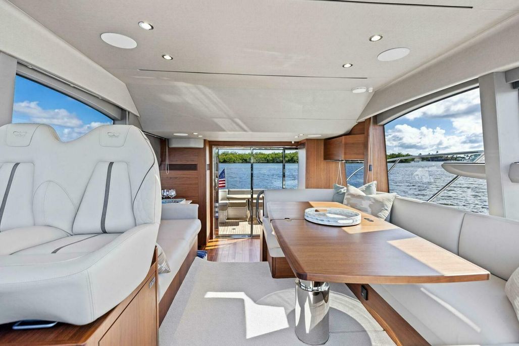 Rare opportunity to own a current model year 2025 Princess F50 Flybridge without the wait! Fully optioned from factory with extended warranties for Seakeeper 6 and Volvo with Starlink and several additional custom options installed by Galati. The Princess delivers the ultimate on-water experience for a flybridge yacht, with an extreme focus on the use of space and dynamic performance. Designed with on-deck living in mind, easy transitioning between exterior and interior invites guests to move seamlessly from indoors to out. Her salon features a U-shaped sofa and dining table for 6 guests, whilst her spacious foredeck boasts a luxurious sunpad, perfect for reclining and relaxing in a secluded bay. Her well-proportioned flybridge with twin helm seats and dual-station instrumentation and latest Volvo-Garmin navigation and control systems enable her to be helmed from both the main deck and flybridge for precision maneuvering. All in all, an exceptional on-water experience for a compact flybridge yacht.