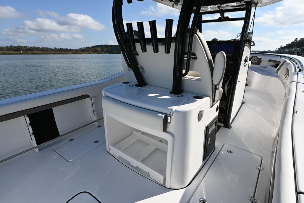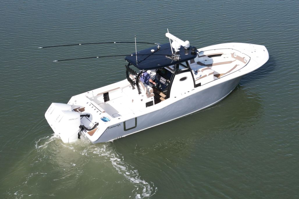 The 320 CC is filled with luxury from the yacht style helm station, backlit aluminum carbon fiber dash panel, wrap around bow seating with flip-out backrests, and so much more.