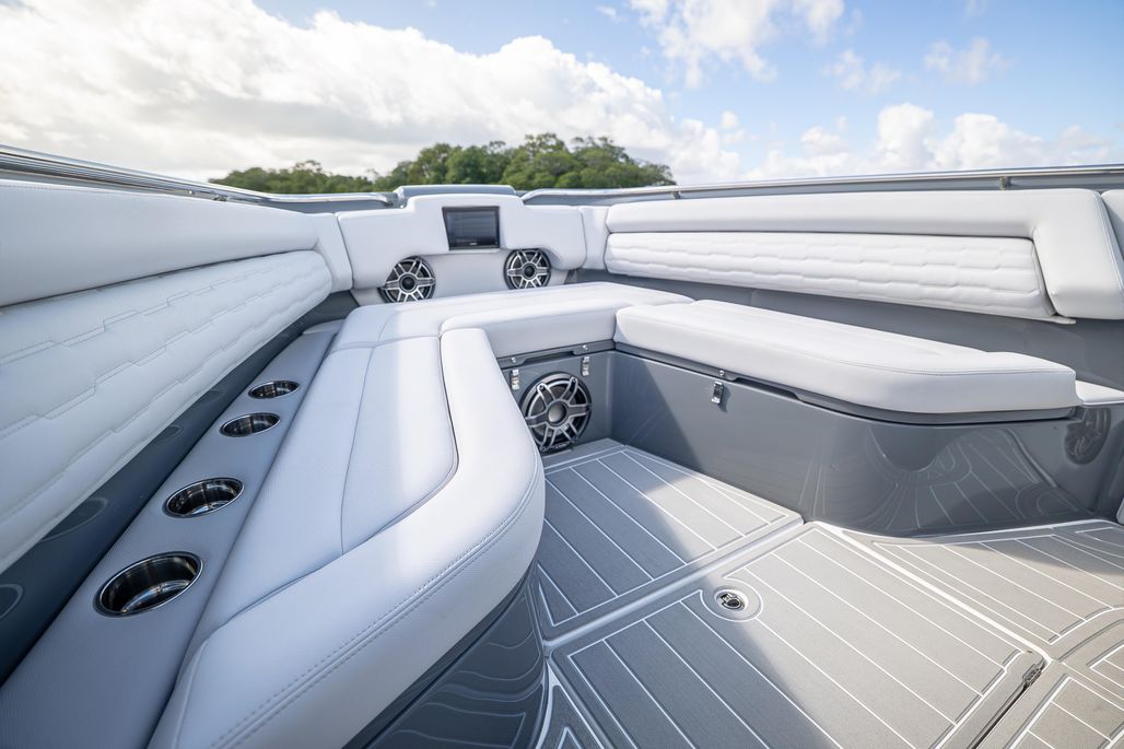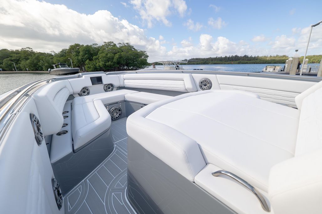 The 2026 42’ Auroris is a cutting edge luxury performance center console engineered for both speed and sophistication. Finished with a Black hull bottom and the striking Auroris Sport Paint Package, it’s loaded with premium features including a SeaKeeper 3, bow thruster, windlass system, telescoping aft sunshade, and front and rear facing cameras for total control and comfort on the water.