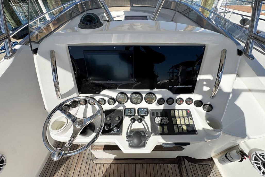 The 2004 Sunseeker Sportfisher 37 is a luxury fishing boat with a large cabin, known for performance with available Volvo Penta diesels or Yamaha outboards, offering a blend of high-speed fishing and comfortable overnighting with amenities like a full head, galley, and sleeping quarters.