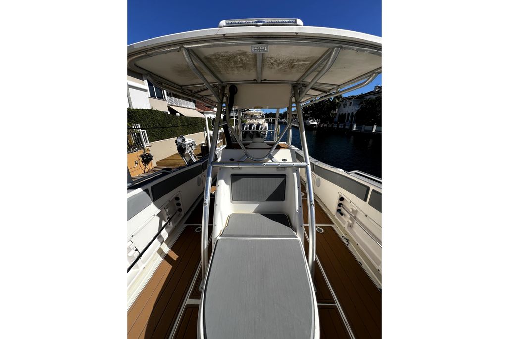 - Step-down cabin with lockable rod storage and separate port/starboard berths.