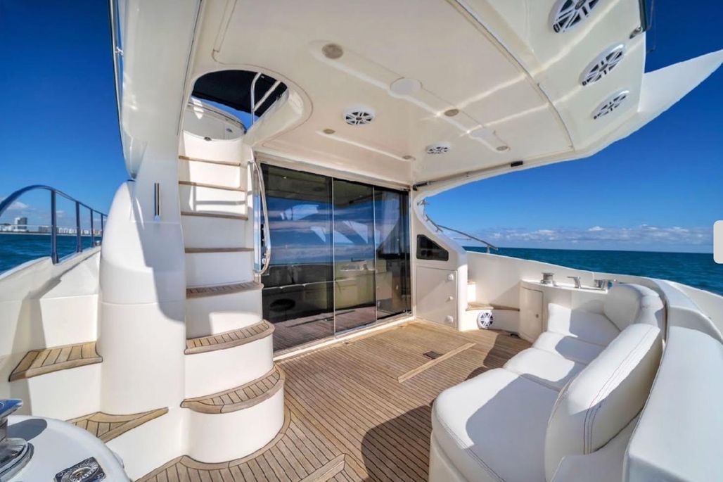 Inside, the yacht features a beautifully appointed full-beam master stateroom, a comfortable VIP stateroom, and elegant guest accommodations that ensure luxurious comfort for all aboard. The fully equipped galley and contemporary salon create a seamless flow between indoor and outdoor living spaces.