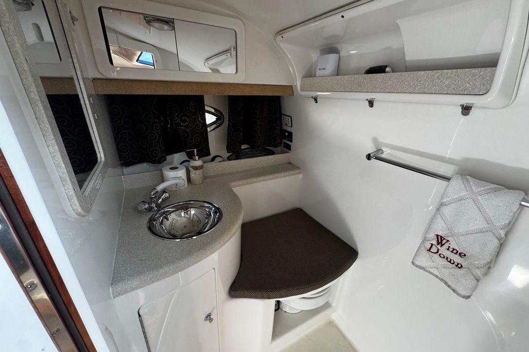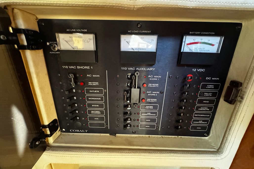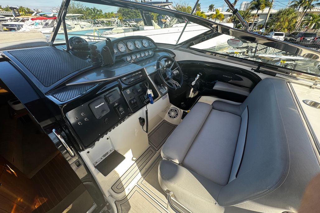 This 2005 Cobalt 360 Express Cruiser mostly fresh water boat. The boat is equipped with 2019 MerCuriser 8.1 MAG HO's 425HP with low hours. The boat is equipped with newer 5KW Generator (with 108.7 hrs), windlass with Delta anchor, Fusion stereo system, underwater lights, hot and cold water aft shower, VHF, Fiberglass Arch, stainless hardware, spacious cockpit with plush wraparound seating, sun pads, transom walk-through. The cabin sleeps four with a forward convertible berth, private mid-cabin double, full galley including refrigerator/freezer, stove, microwave and sink, enclosed head with shower and VacuFlush system, air conditioning with reverse-cycle heat, brand-new bottom paint and zincs.
