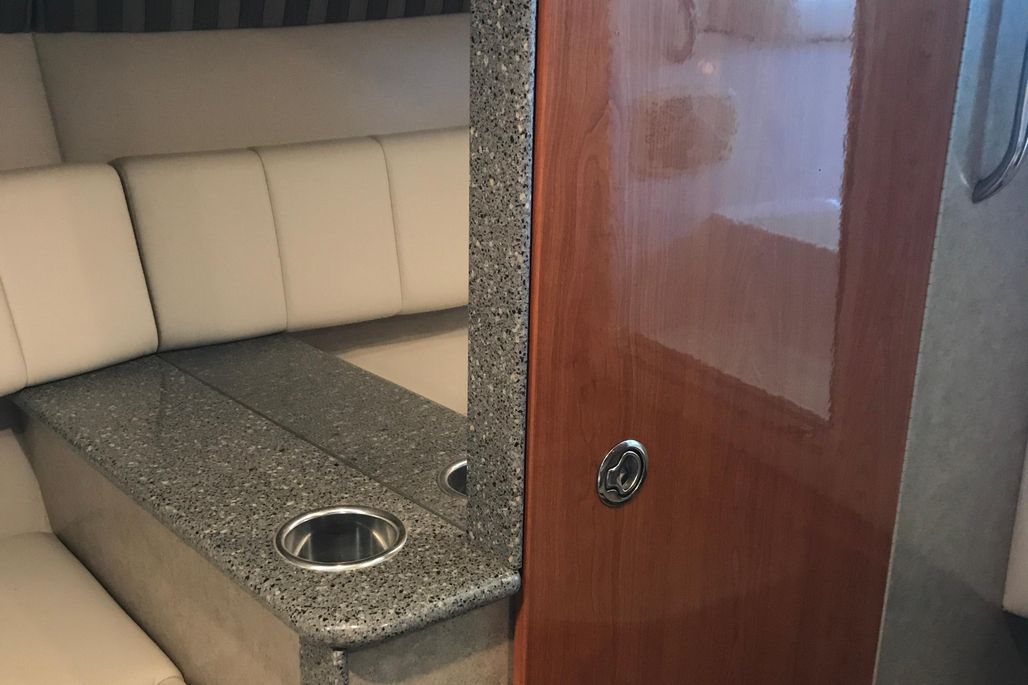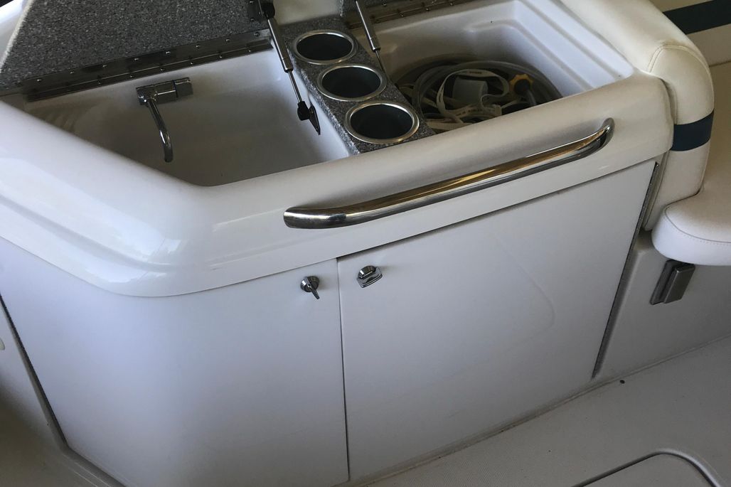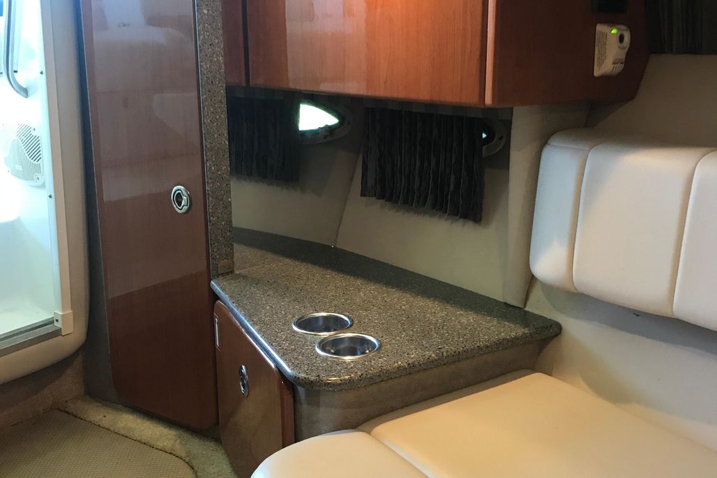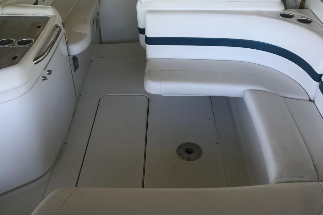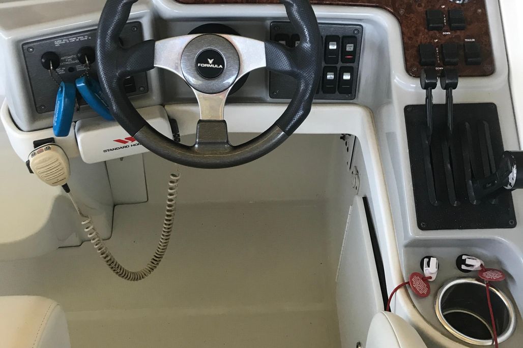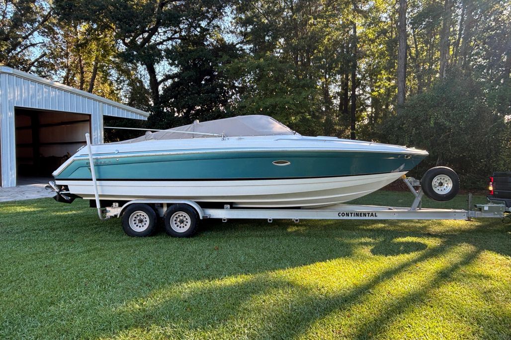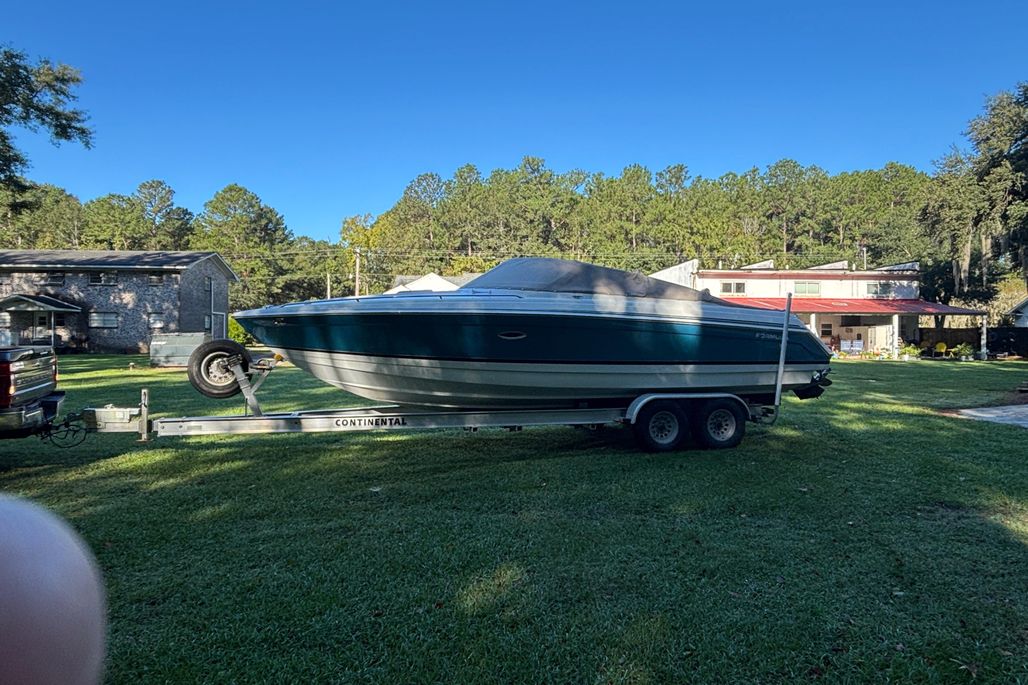 This is a rare find Formula 28 that has been maintained to the highest degree and has been kept on its trailer under cover in a boat shed. She has recently undergone a thorough mechanical upgrade where all systems were checked and all maintenance brought up to date. This one can be considered a "go fast" with the Captain's Choice exhaust sounding off or can be considered a "Family Cruiser" in the silencer position. She has a spacious cockpit with lots of seating a wet bar and dedicated storage for fenders or dive tanks under the port side companion seat. Other exterior features include a walk-thru windshield, a large storage compartment in the deck, a double wide helm seat with bolsters, Garmin GPS/Depth, storage compartments under the companion seats and a premium sound system with amplifier. The cabin is roomy and features a v-berth settee and a spacious head compartment with shower and vacuflush system. She also features a Bimini top and full weather enclosure plus snap in carpeting (in storage). RECENT TRAILER REBUILD 2025 - NEW AXLES, TIRES, BRAKES, AND BUNKS - RECEIPTS AVAILABLE. Call today and be on the water this weekend....this one is "turn key" ready.