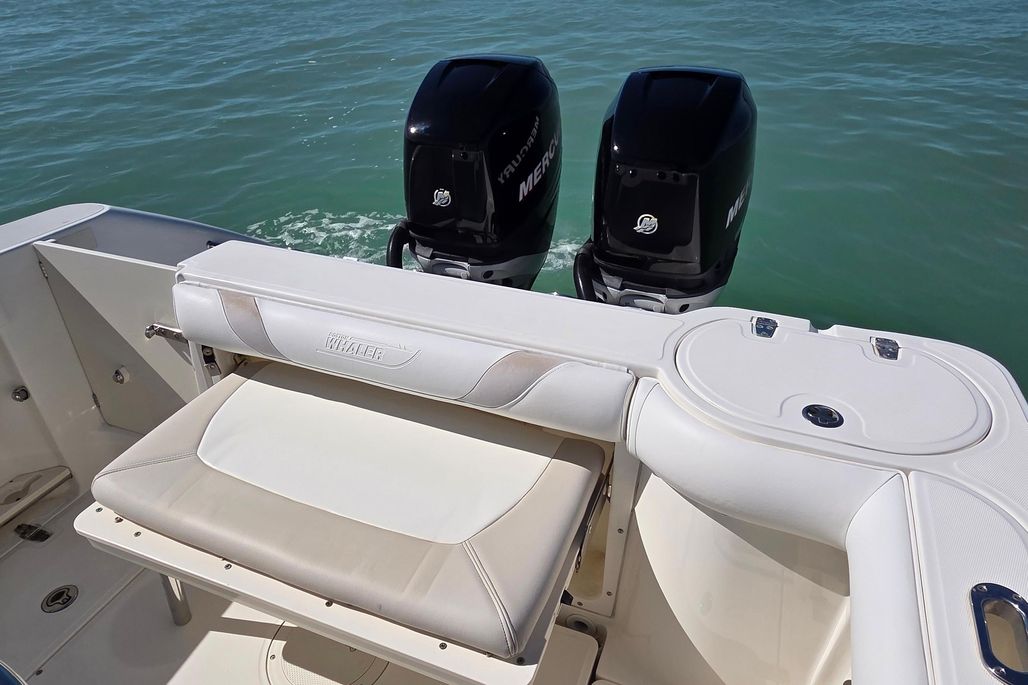 This boat promises exhilarating speed and responsiveness. The electric windlass enhances convenience, making anchoring a breeze. Accommodating up to 14 passengers, the 270 Outrage is perfect for family outings or fishing trips with friends. It includes a well-appointed head for added comfort during longer excursions. Whether you're navigating coastal waters or heading out for a day of fishing, the Boston Whaler 270 Outrage is equipped to provide an exceptional experience on the water. Enjoy the perfect blend of functionality and style with this impressive vessel.