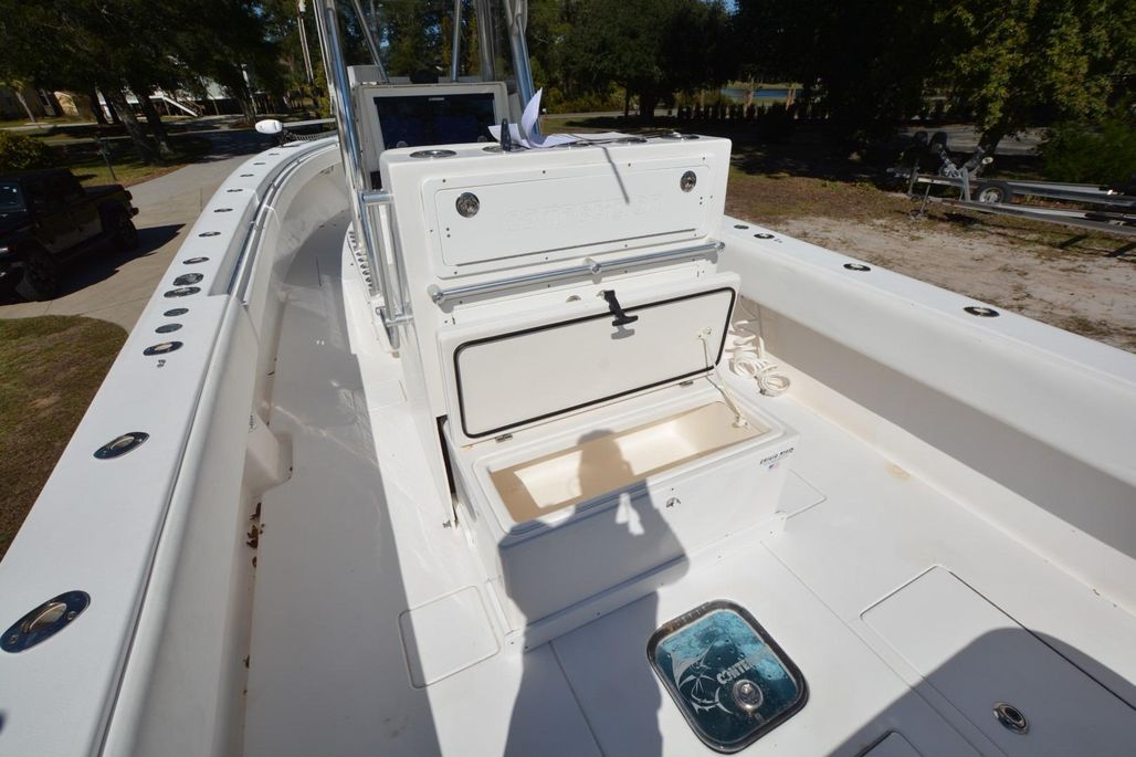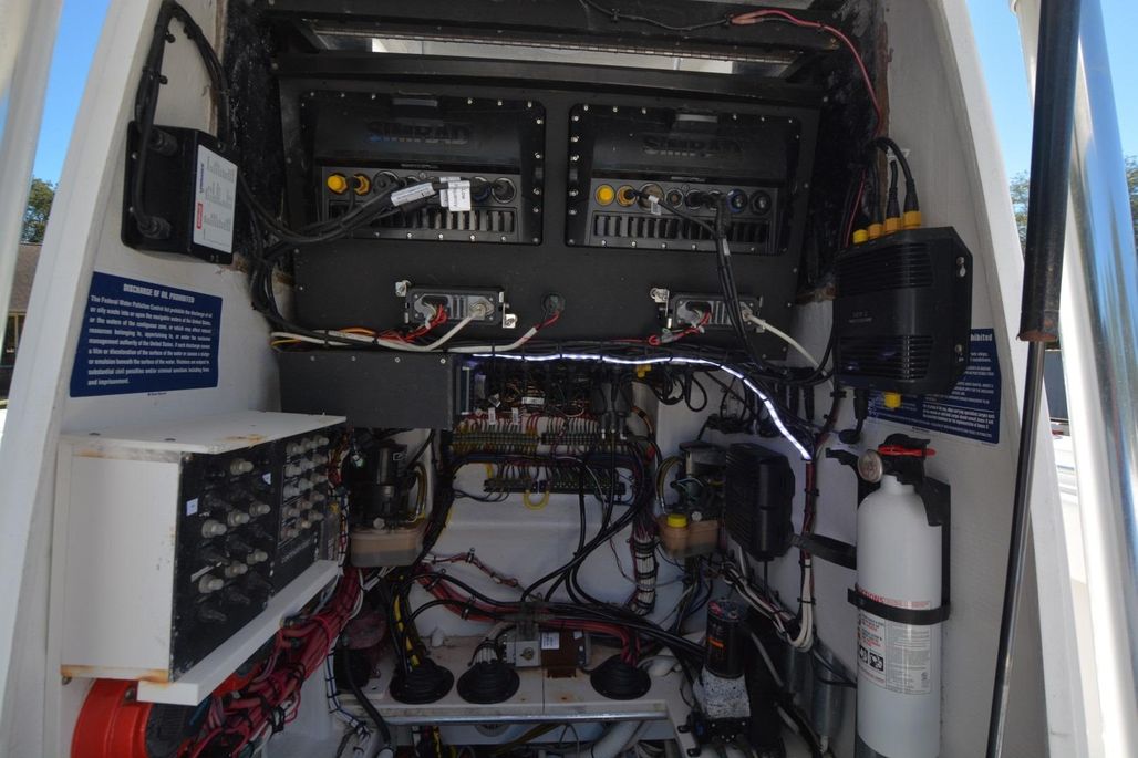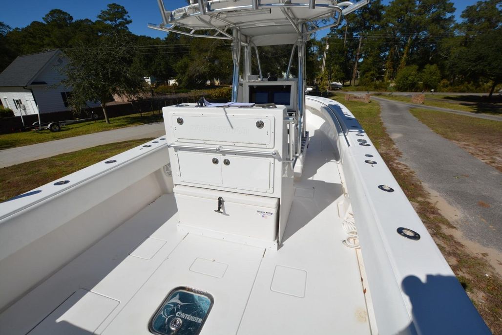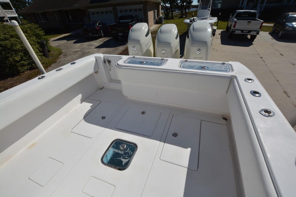 One of Contenders true battle wagons. This is a nice example of a non-stepped hull, triple engine beast. She will cruise at 38 mph, 4100 rpm at 1.37 mpg. She has been upgraded with new Rhodan Trolling Motor, Leaning Post with sliding cooler below and Live Wells in transom, aft deck and forward deck. Tournament Fishing or Bahama Trips here she is.