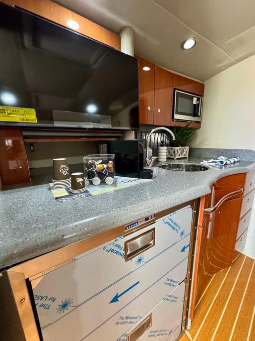 Powered by twin Volvo IPS 500 D6 diesels (1,200 hrs) with freshly serviced engines and pods, this boat delivers smooth, efficient performance and effortless joystick docking. It’s truly turn-key and ready to enjoy today.