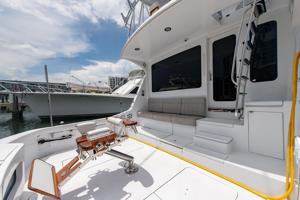 Mezzanine level seating in the cockpit keeps you, your guests and the crew comfortable and alert while fishing or cruising and inside the seating is everything you are going to need for the trip and todays catch. Possibly most enticing to you and your wallet, she was ordered new to be easily cared for with no teak anywhere to maintain.