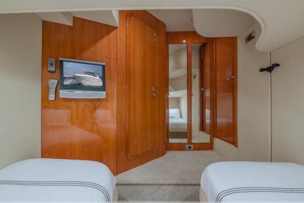 Designed for both luxury day cruising and comfortable overnight stays, the Portofino 47 features a beautifully appointed saloon and two spacious en-suite cabins, accommodating four guests in complete comfort—ideal for extended weekends or coastal cruising.