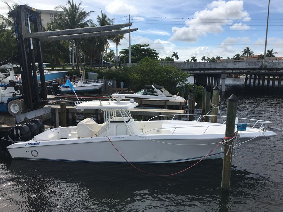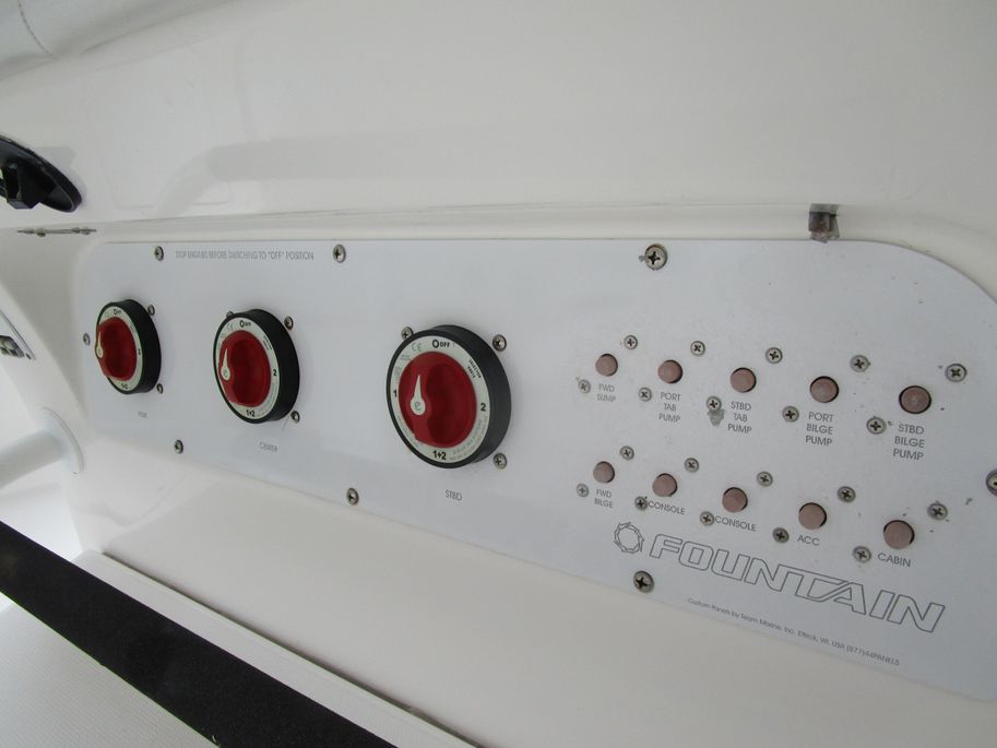 You're looking at a 2007 Fountain 38 TE powered by triple Mercury 300 hp verados with less than 530 hours. The boat is equipped with dual Raymarine GPS, Raymarine radar, autopilot, VHF, depth sounder, kenwood stereo, bow thruster, remote spotlight, windlass anchor, powercoated T-top, powercoated bow rail, flip down bolster helm seat, raw and fresh water wash downs, one main tank with aux tank, forward cabin , bow cushions, triple battery switches, dive ladder, fighting chair and more. FINANCING AVAILABLE and WE ACCEPT ALL TRADES.