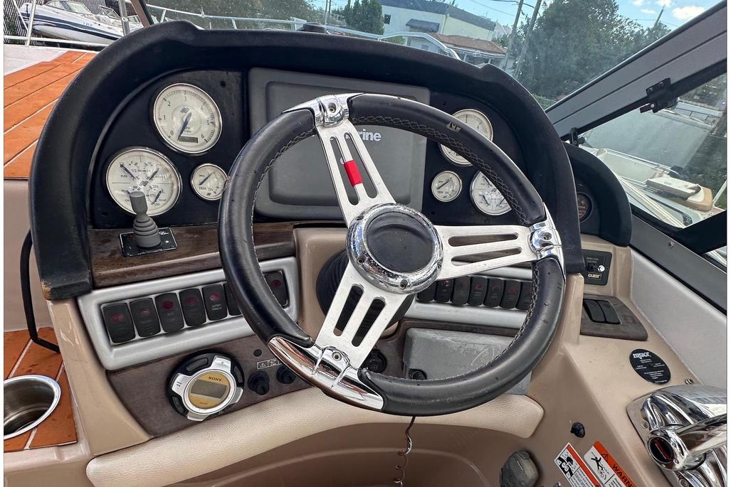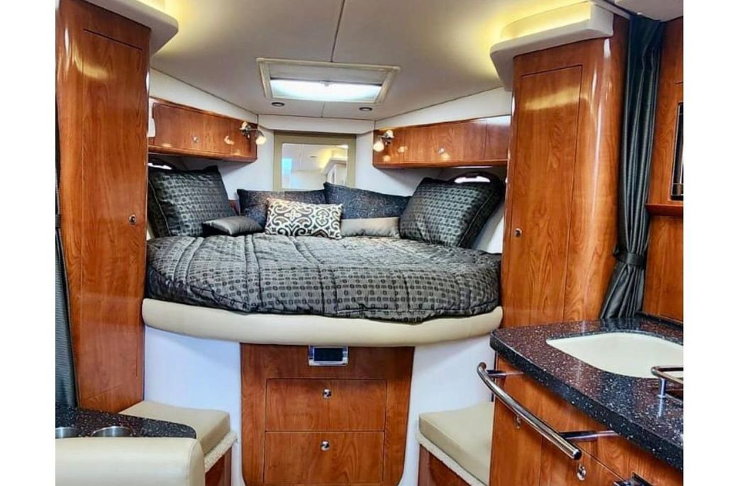 Powered by twin engines that provide reliable performance, this V338 offers efficient cruising and confident handling. With an 11 ft 6 in beam, the boat feels stable and roomy both inside and out.