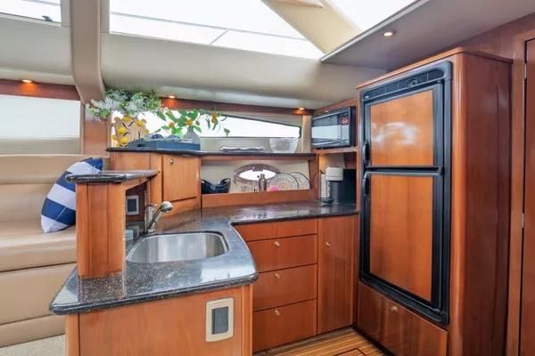 Step aboard to discover a well-designed layout featuring two private staterooms with ensuite heads, refined decor throughout, and a galley complete with an espresso bar. The salon flows naturally into the aft deck, offering a bright, open feel and plenty of room for entertaining.