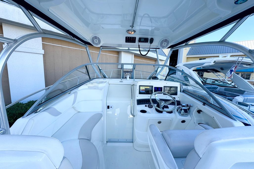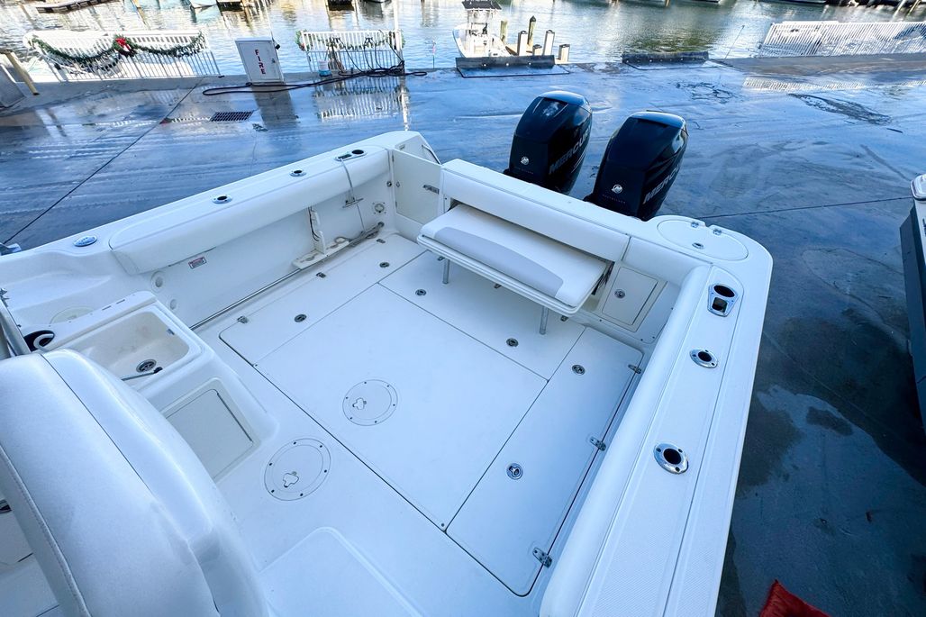 Its deep Vee hull, crafted from durable fiberglass, ensures a smooth ride even in challenging waters. Powered by twin Mercury CXL DTS Verado FourStroke outboard engines, each delivering 225 horsepower, this boat offers impressive performance with 685 hours of use.