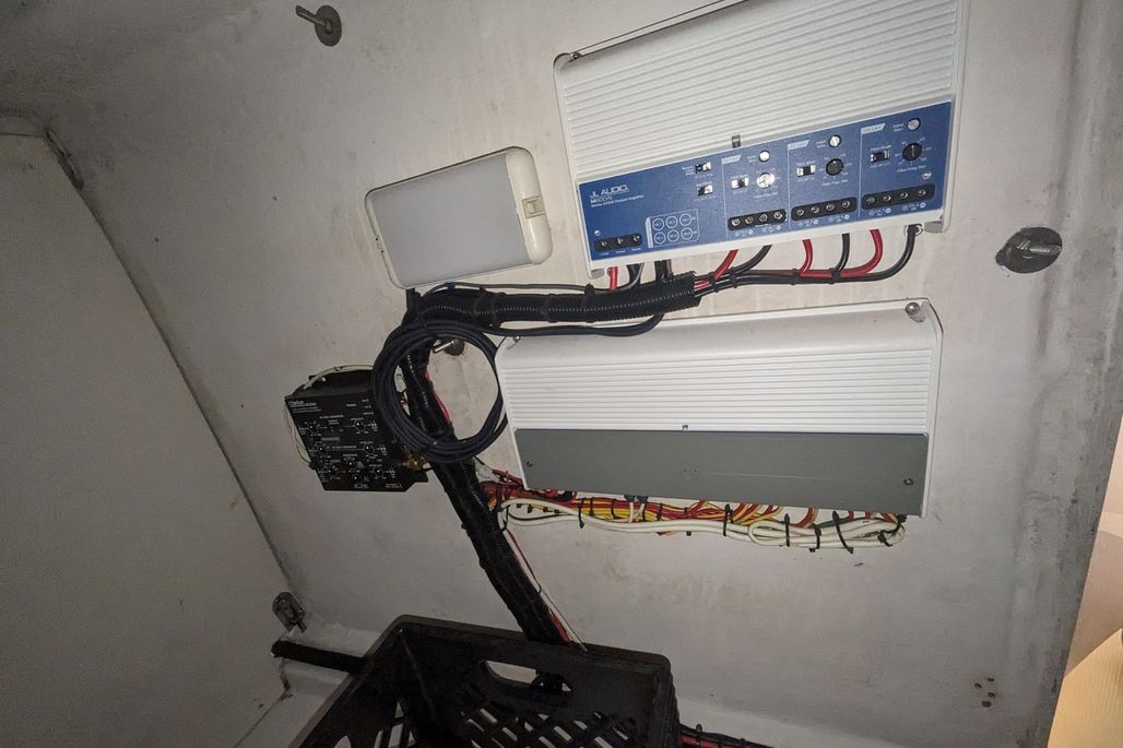 • Electronics: New Fusion Stereos w/ Dual JL Amplifiers powering 12", 10" and 8" Subs, Dual Garmin 1242xsv Touch Screen GPS/Fish Finders, Garmin 24xHD Radar Dome, Garmin Auto Pilot, Garmin VHF Radio, LED Remote Go Light, LED Spreader Lights, Underwater Lights, Cellular/Wifi on Board for Internet and TV.