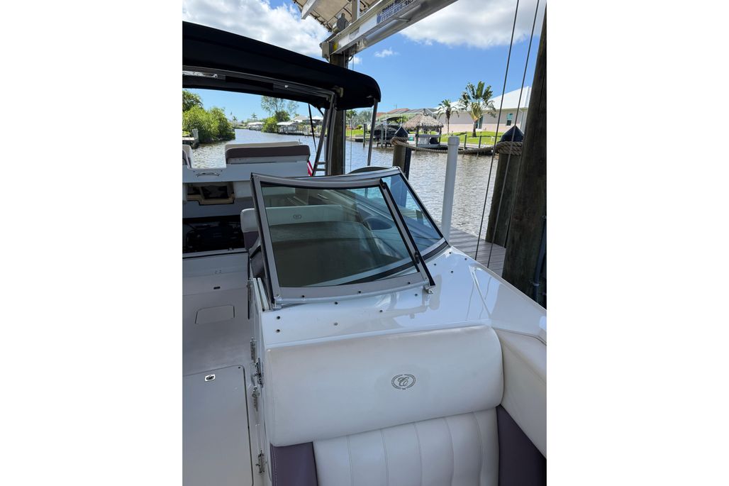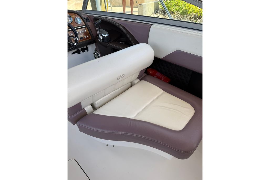 This Cobalt 296 has been exceptionally well maintained and benefits from being kept on a covered lift, protecting her from the sun and waterline staining. The upholstery, canvas, and exterior finishes present in excellent condition, reflecting the care she has received.