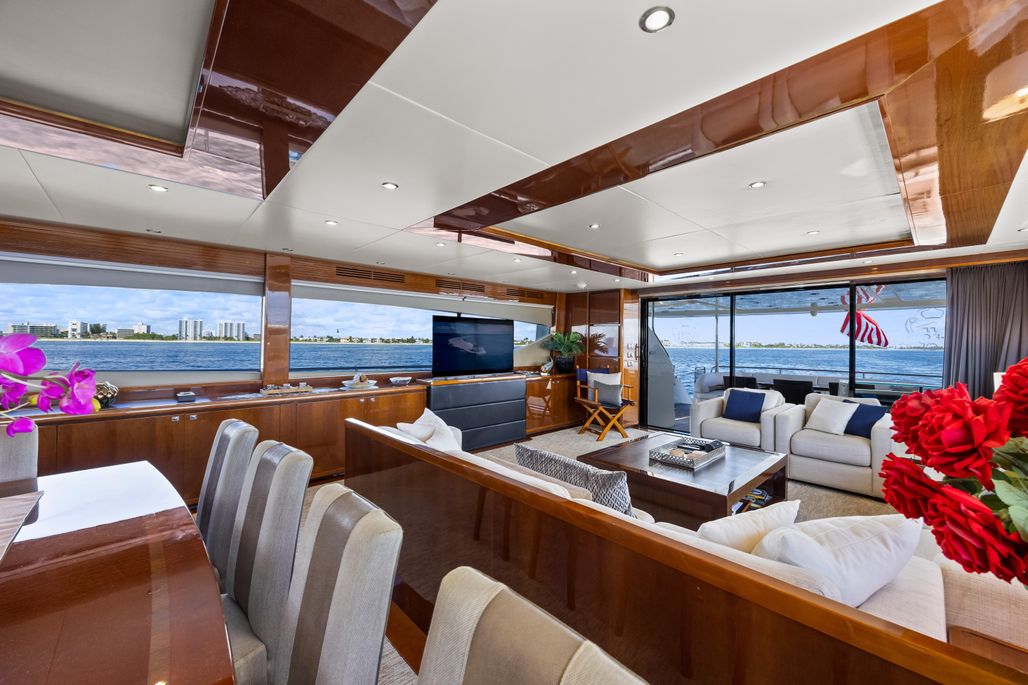 Inside, her spacious interior layout is designed for entertaining and relaxation. Expansive salon and dining spaces flow seamlessly into generous outdoor decks, creating multiple zones for gathering with family and guests. The accommodations are refined and luxurious, offering privacy, comfort, and all the modern amenities expected of a yacht in her class.