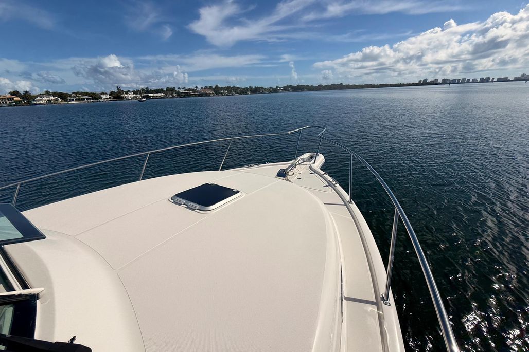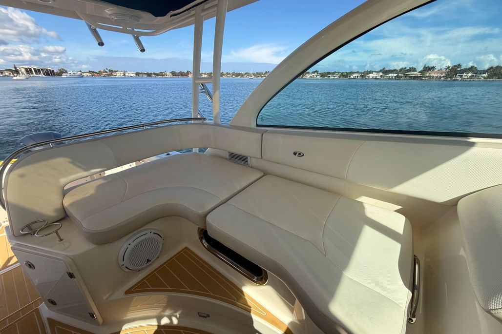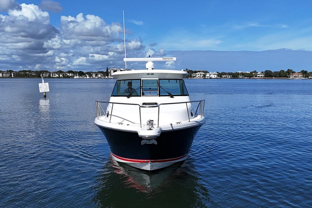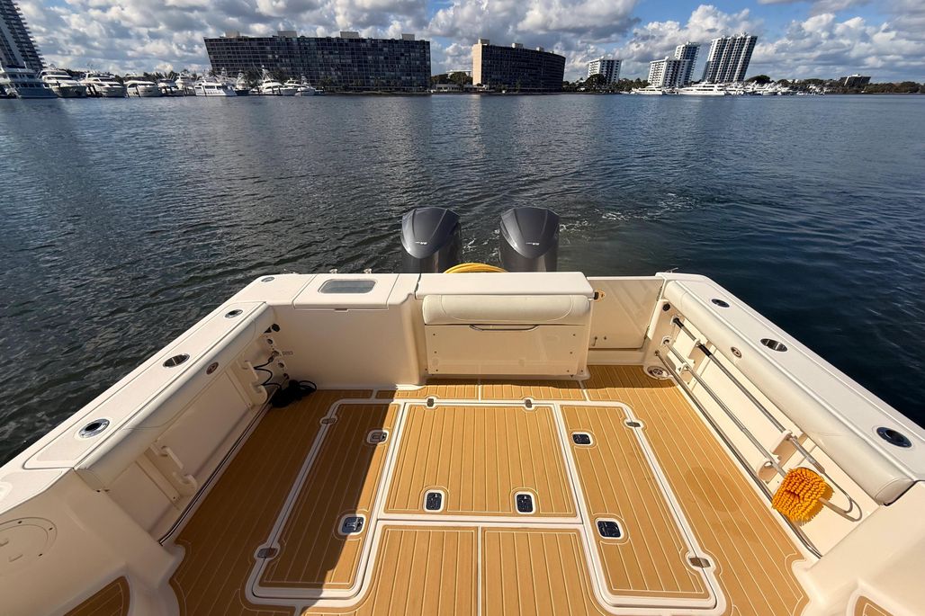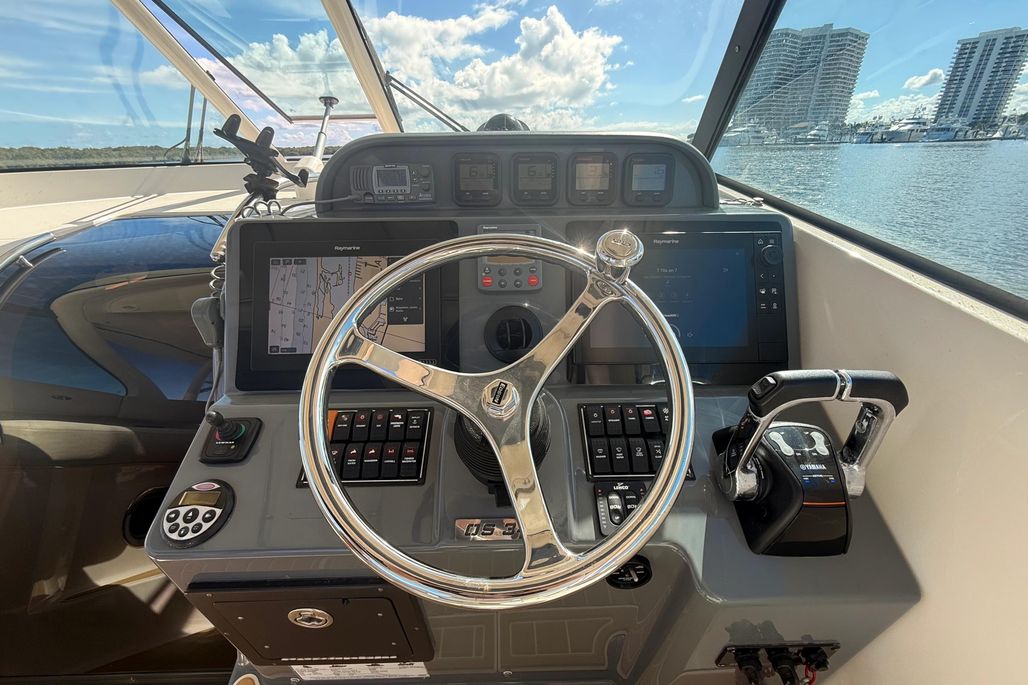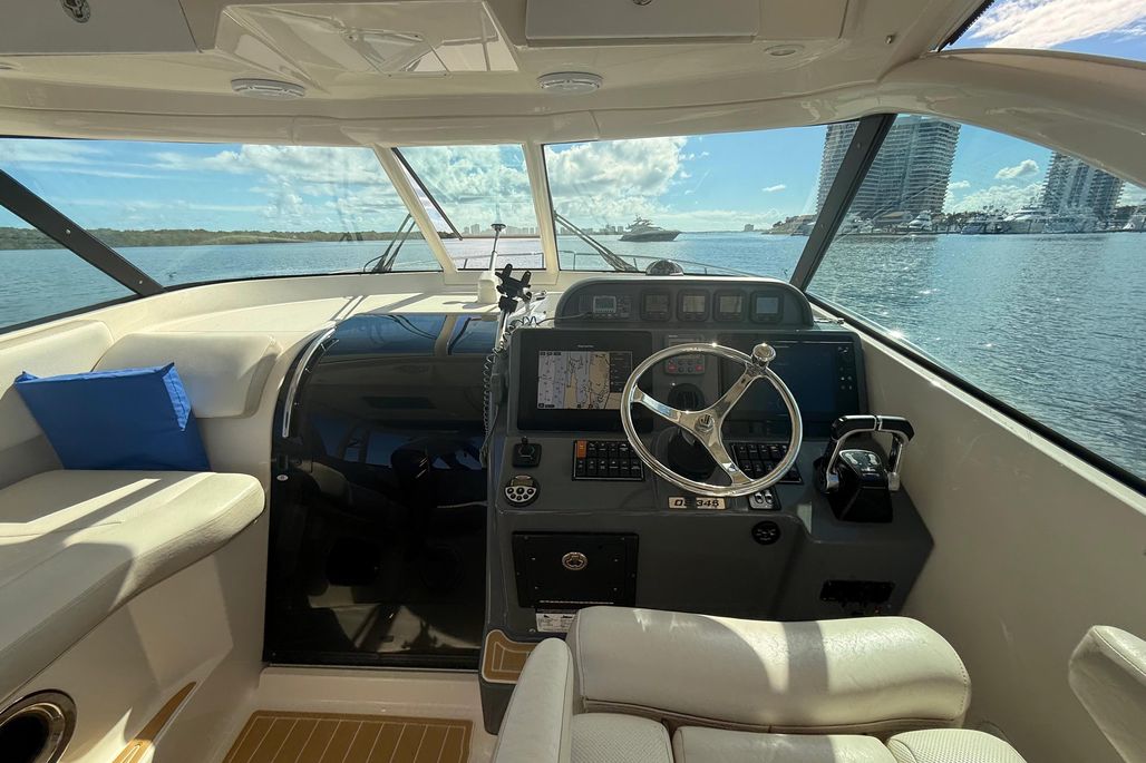 Designed for serious offshore capability while remaining equally suited for cruising and entertaining, the 345OS offers a deep-vee hull for a smooth, confident ride, a spacious cockpit with ample seating, and a well-appointed helm with excellent visibility. Below deck, the cabin features a comfortable V-berth, enclosed head, galley, and air conditioning—making overnight trips easy and enjoyable.